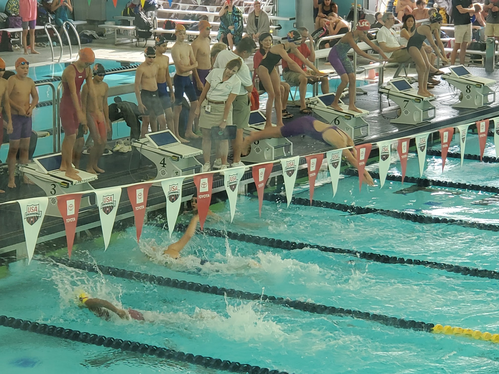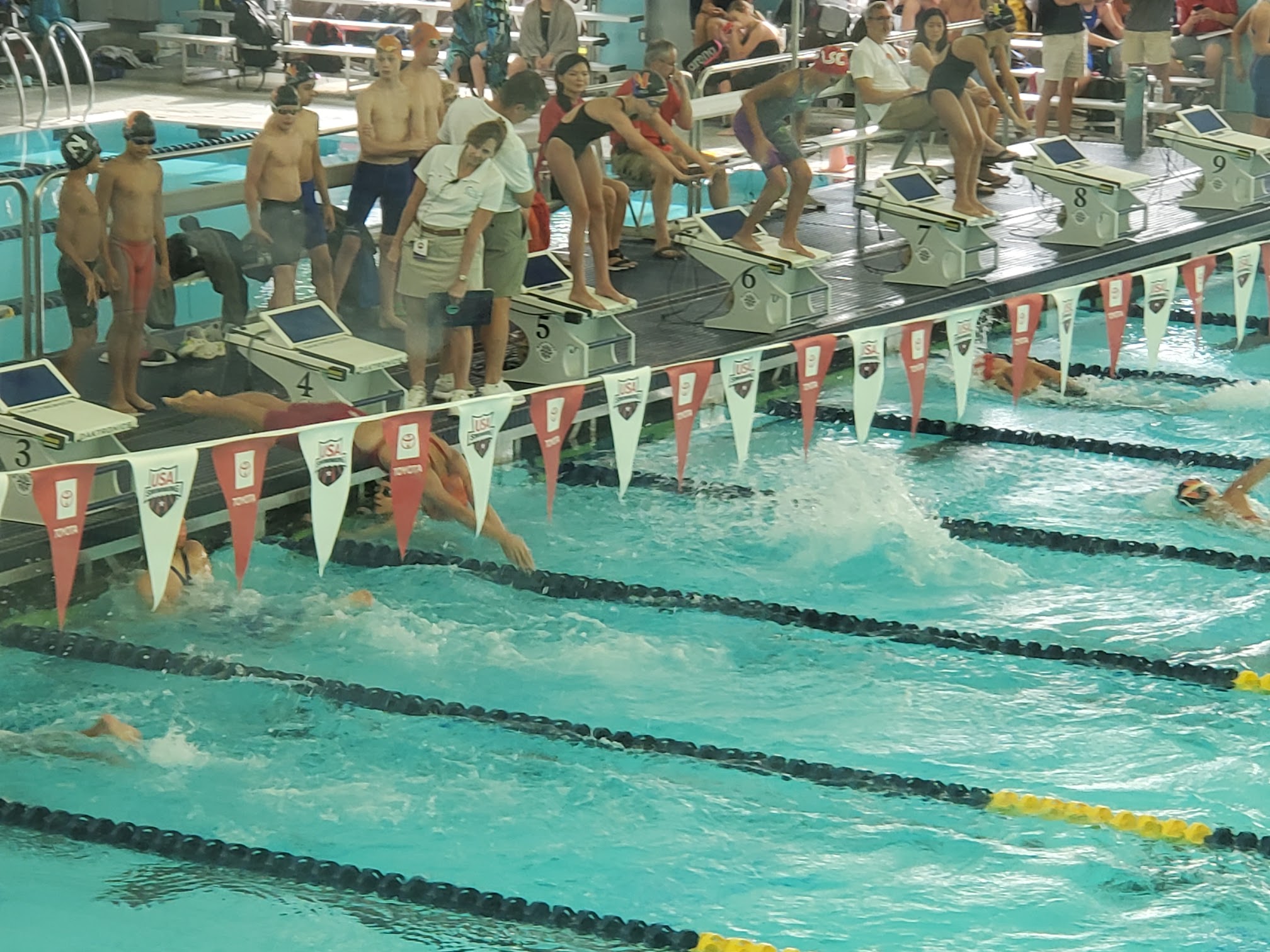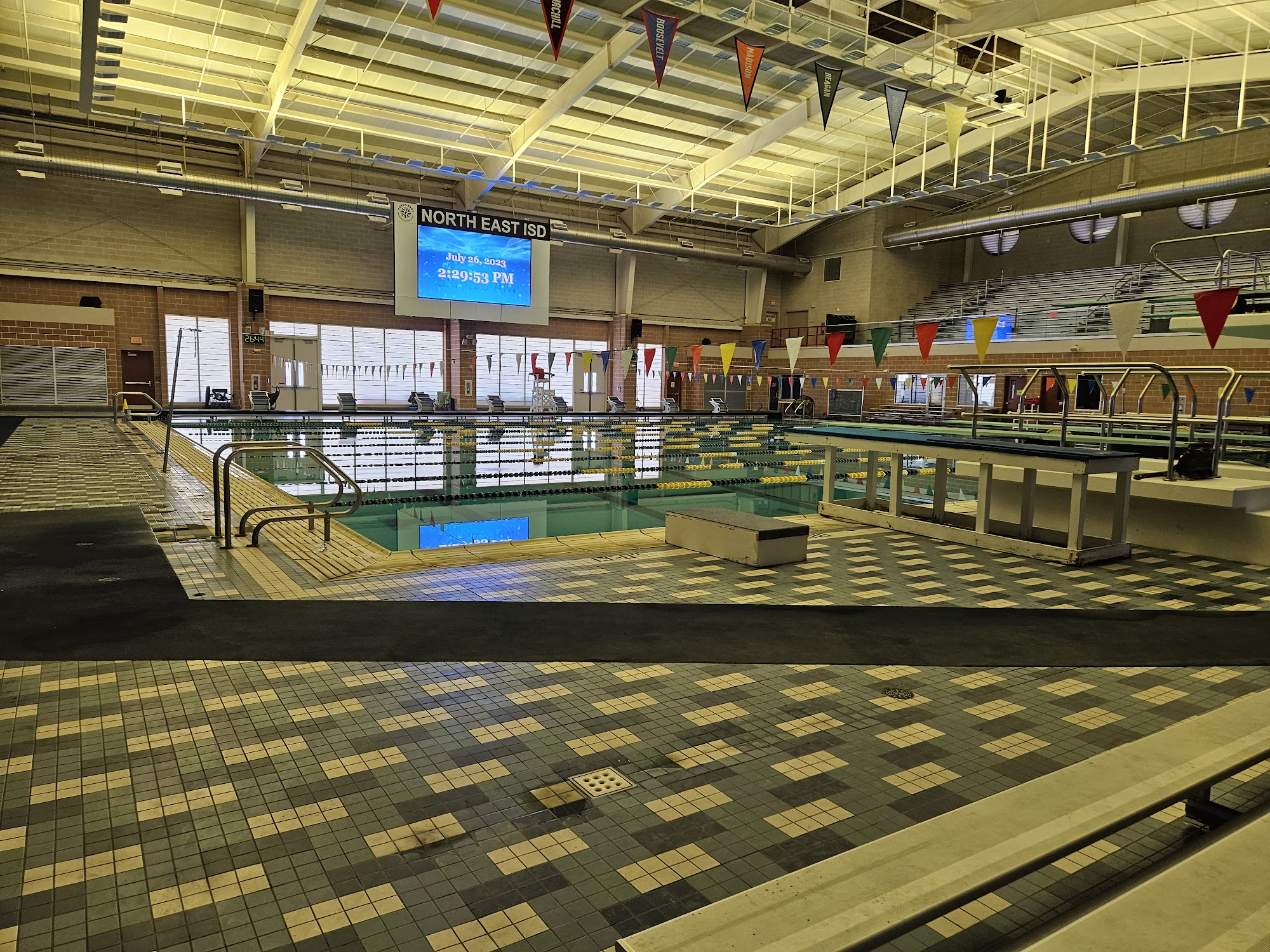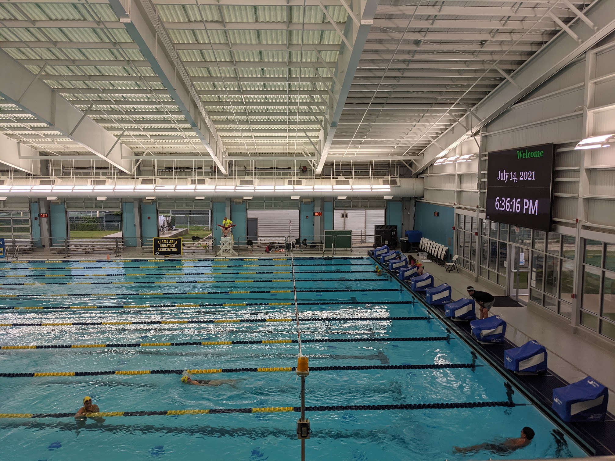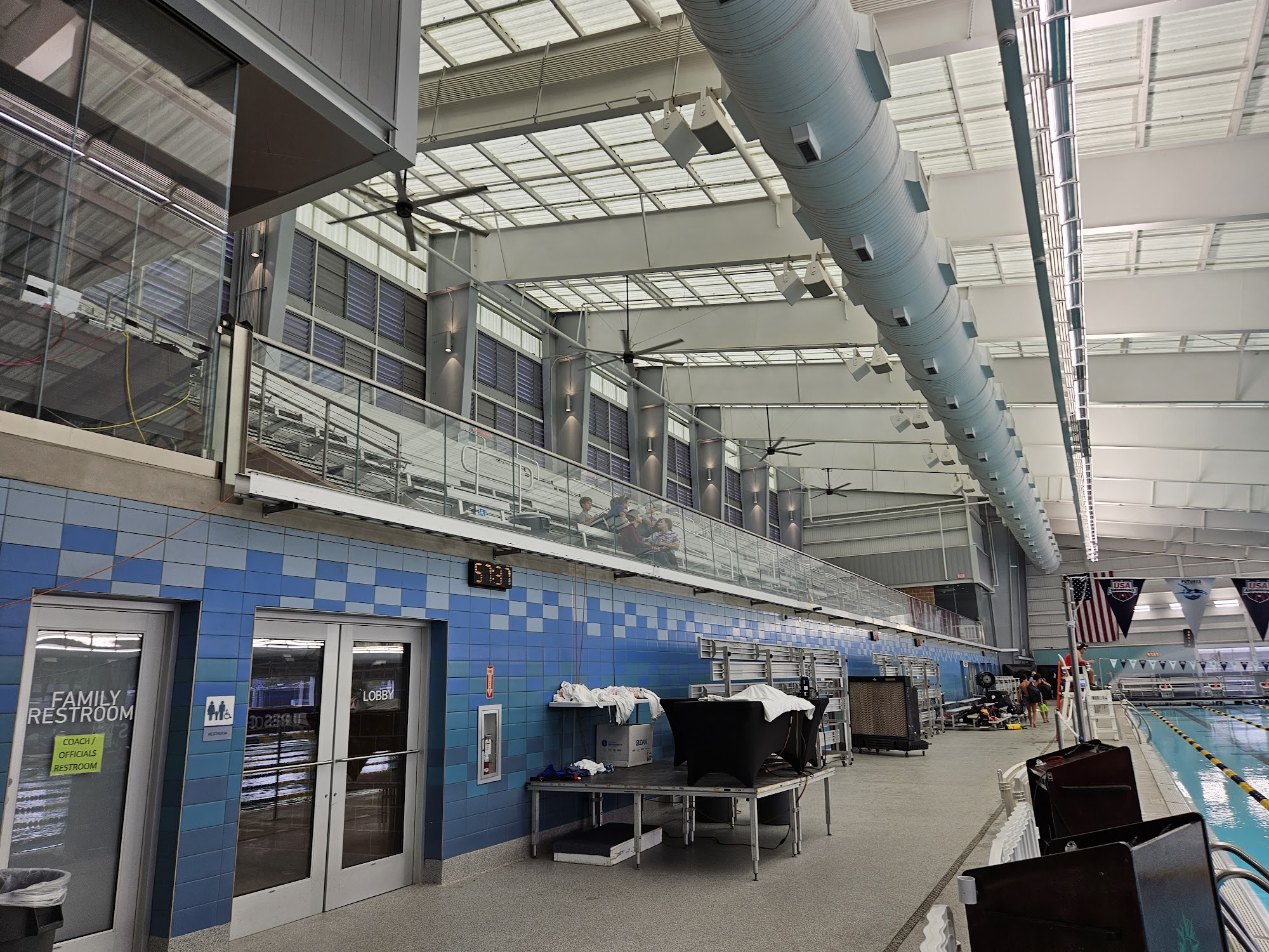 Nice pool, not impressed with the set up. No food or drinks allowed. Then why do they force athletes to go in a completely separate area blocked off from the vendor? It was so hot by the second session, my swimmer (from the first session spectator for the second) and I (spectator for first and second) were ready to pass out. Water is $3 a bottle! It's robbery. They make parents wait outside to come in and then once you are in you find out you can't bring any bags. I think this experience will stop me from registering my kids up for any meets at this location