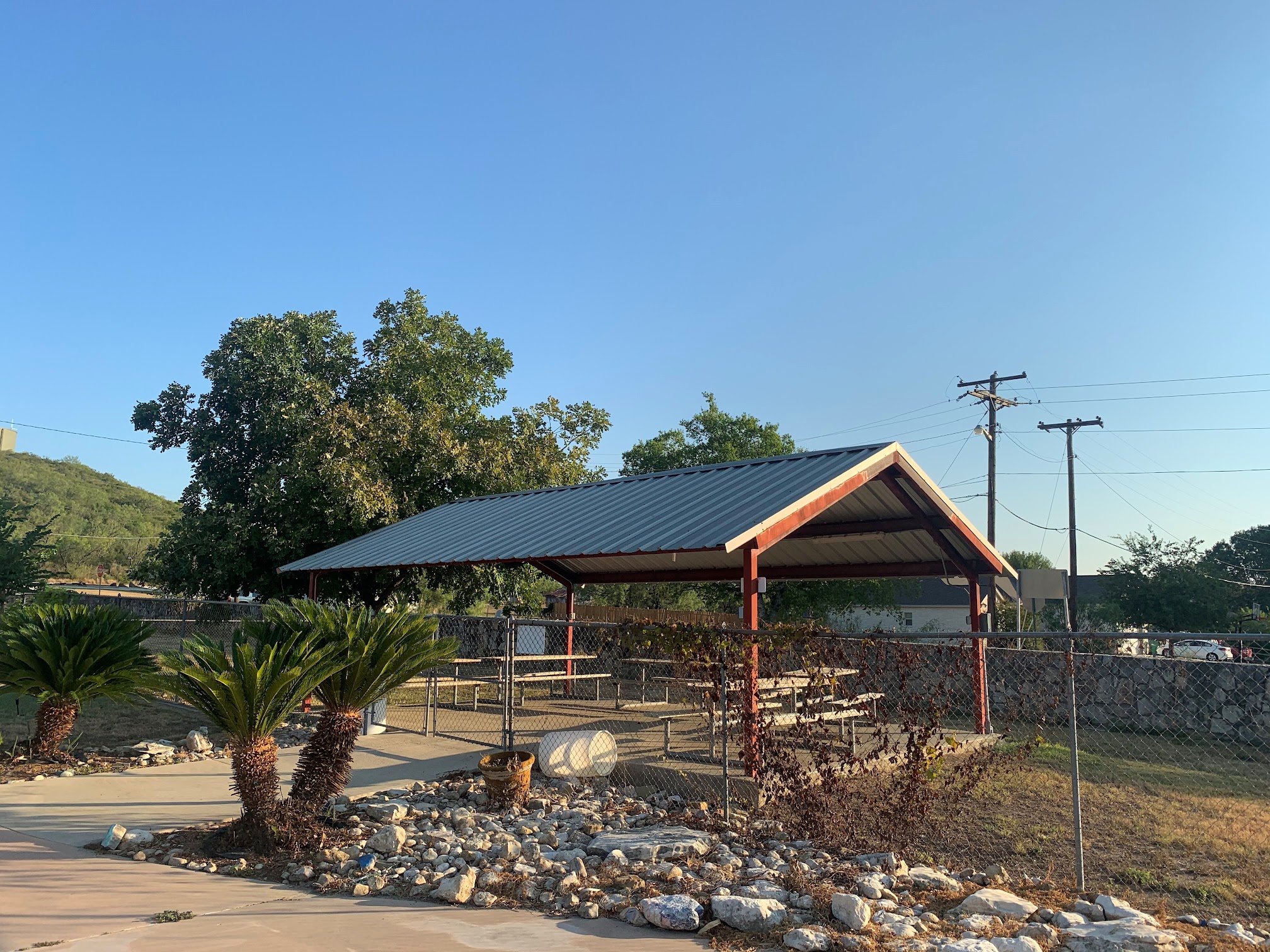 The pool is nice, tables are plenty, the restroom are nice and kept clean plenty of shade as well.
