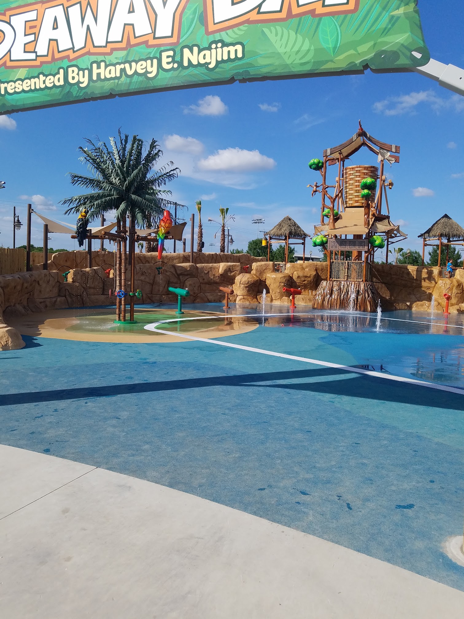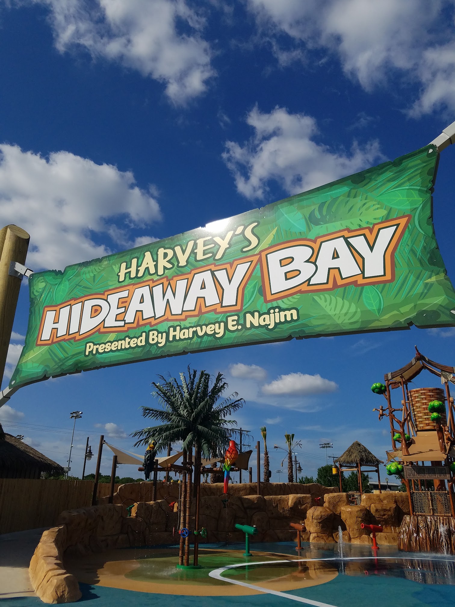 Harvey's Hideaway Bay is a tropical-themed splash pad and water play area located within Morgan's Inspiration Island, the ultra-accessible water park component of Morgan's Wonderland in San Antonio, TX. It offers an inclusive environment designed for guests of all ages and abilities, featuring various water elements in a universally accessible setting.