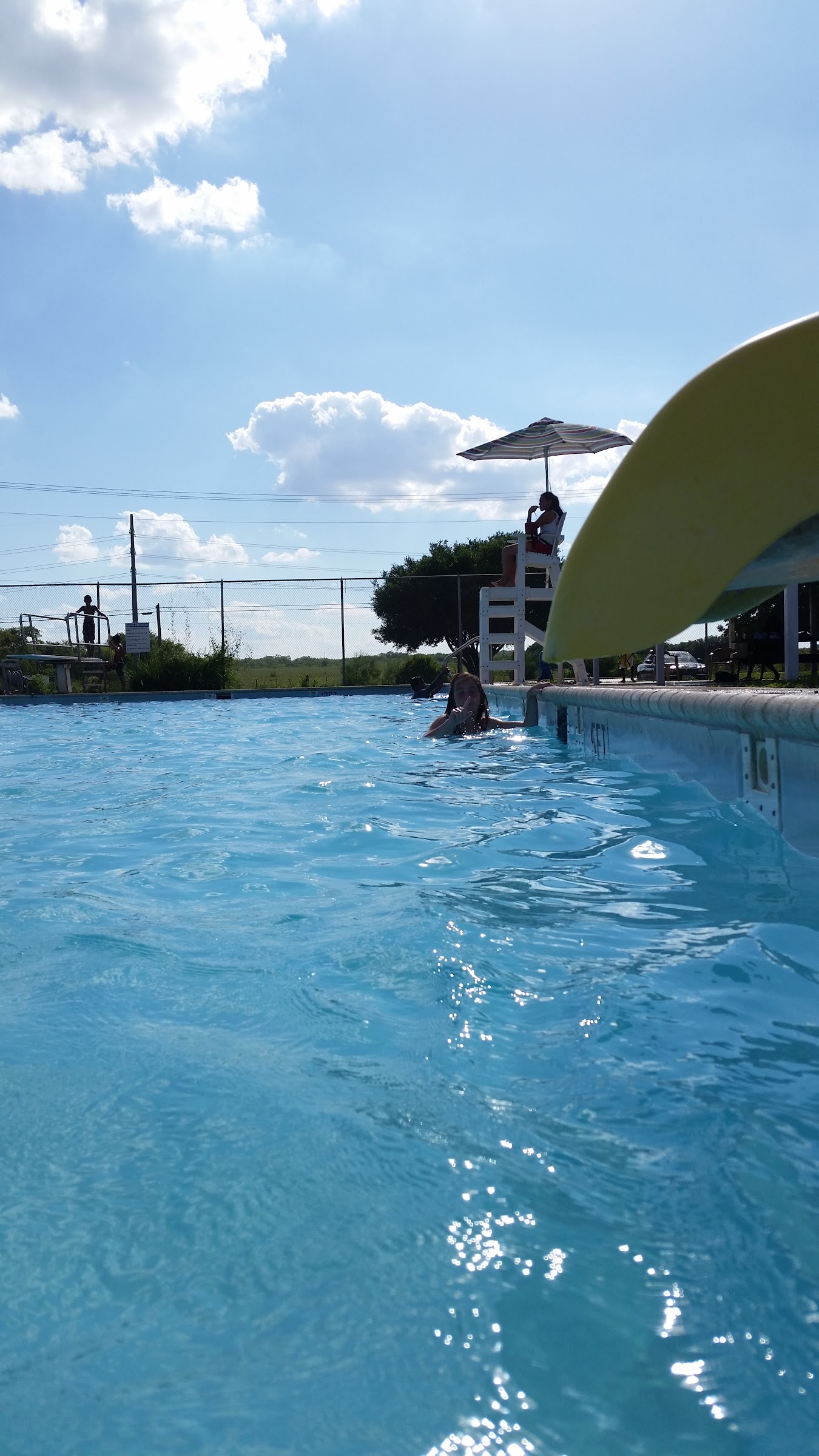 This place is highly underrated! A gem in Hondo. Large covered seated area with 8 padded wicker sectionals, 15 lounge chairs with umbrellas, 11ft deep end with nice diving board, nice slide into 4ft 6in area for littles, concessions stand with reasonable prices, large pool, and life guards who are friendly. Highly recommend!