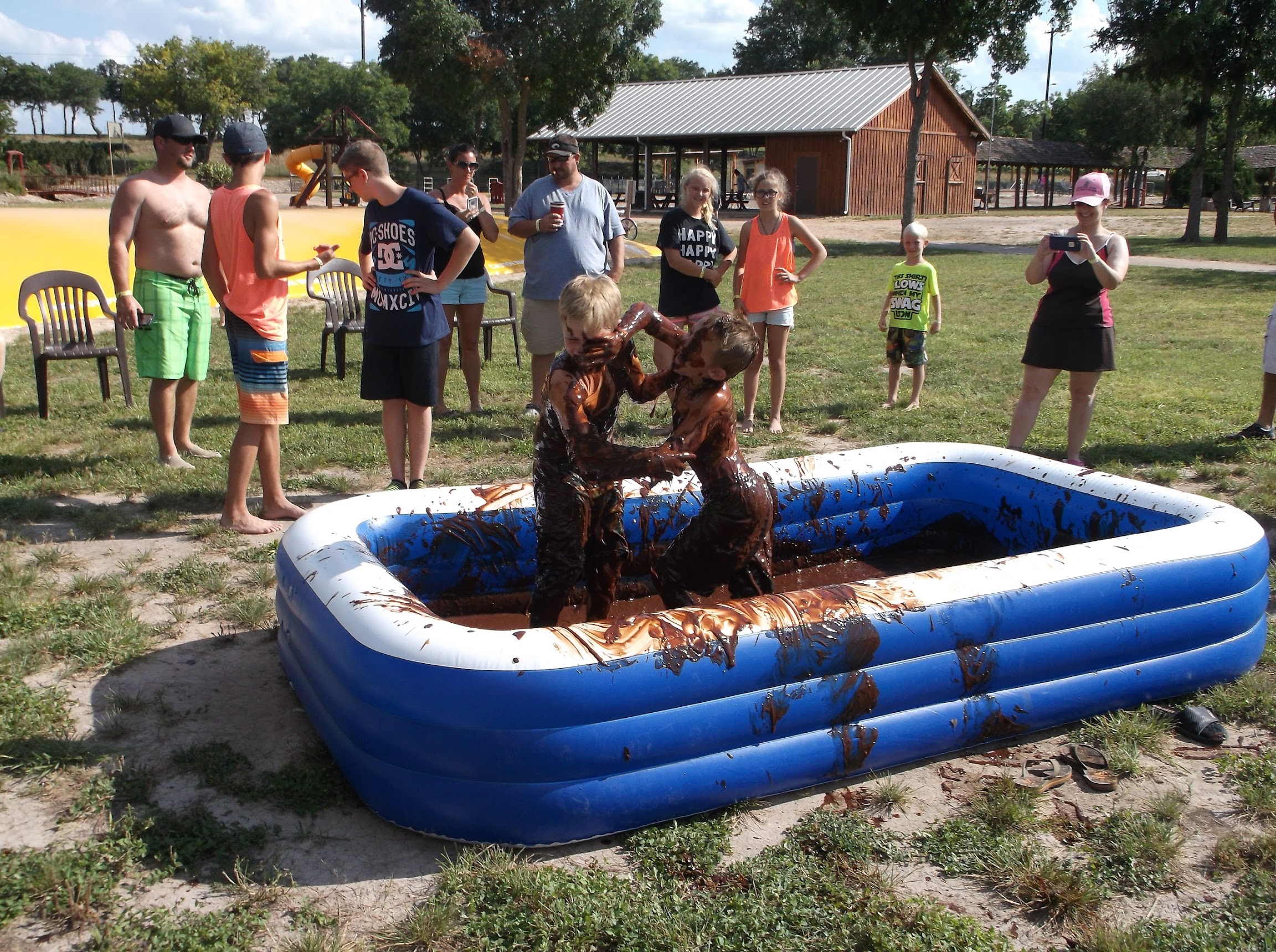 This was my first time staying at a Jellystone park in decades (the last one was in VA. It was nice, but nothing like this). They were running a BOGO special so we booked a tent site for 2 nights and drove up from Houston for the weekend, just me and my two sons (7 & 5). We got there by 5 on Friday, set up our tent (took an hour), but by the time we went to the water zone at 6:15 it was closed. The lady at the desk had told me the hours but I must have mixed them up in the chaos. No biggie, we went to the pool and hot tub after setting up. We got a tent spot next to the bathrooms, and the electricity worked great for our little AC. Tent sites are TINY. I usually camp in TX state parks and these spots are right on top of each other. I shudder to think how crowded it gets in summer, but we were one of only two tents this weekend so it was perfect. If we came during a busy time, I would bring a camper or rent a cabin since our tent would only have 6–12 inches between us and the next one. Tent sites are the cheapest, which I thought were overpriced until we experienced the amenities: wagon ride, arts and crafts (tie-dye is extra), jumping pillow, rec room, arcade. All the arcade games are free, and contrary to other reviews only the basketball game was out of order. It was hard to find though, so ask a staff member since the sign is tiny on the back of the main building. The arcade is also small and way too loud for those with sensory issues when busy because the air hockey echoes off the walls. Still, it’s free and right by the laundry (not free, but cheap) and a… massage place? Not sure what that was. But let’s be honest, the biggest draw is the water zone. We have a Jellystone in Waller so I know they have cool features, but whoever runs the Instagram page for this location is clever. They installed waterproof LED lights on the splash zone and came up with Club Wet, which looked insanely cool in videos. I’m a sucker for that kind of thing, hence why I schlepped my kids 3.5 hours on a Friday for a short weekend stay. Several minor water features did not work, but that did not stop it from being intensely fun. My sons did each slide 100+ times. In the first couple hours there were never more than 1–2 kids ahead of us and everything went quickly. Later the line backed up and staff had to supervise, but otherwise they rarely bothered anyone. One of my biggest pet peeves as a mom is lifeguards on a power trip, and I did not experience that here. Kids went down the slides head first, feet first, backwards, together, separate. It was great. Club Wet was an awesome extra especially since the water zone usually shuts down at 6, so to have it reopen from 7-10 and completely wear my kids out for bedtime was *chefs kiss* 🤌🏼 . Millennials, would you like to relive your 1996 school dance complete with fog machine, revolving lights and music, but with the addition of being wet and having your children with you? This is the place to do it. I was concerned that reality would not live up to the hype but Club Wet was definitely a core memory for my kids, and me. It was almost 9AM before they woke up the next day. A modern day miracle. We’ve already told our friends who are pretty camping averse and even they are eager to come and try one of the cabins. Like I said, I don’t think I’ll return during the busy season but weekends during the fall and spring while school is still in session seem to be the sweet spot for how much crowding I can deal with. I will definitely be giving other Jellystone locations a try as well after this as well, and planning to come back out here soon. Quick note: they also have a nice souvenir collection if that’s your thing. I’m an avid patch collector so this was important to me