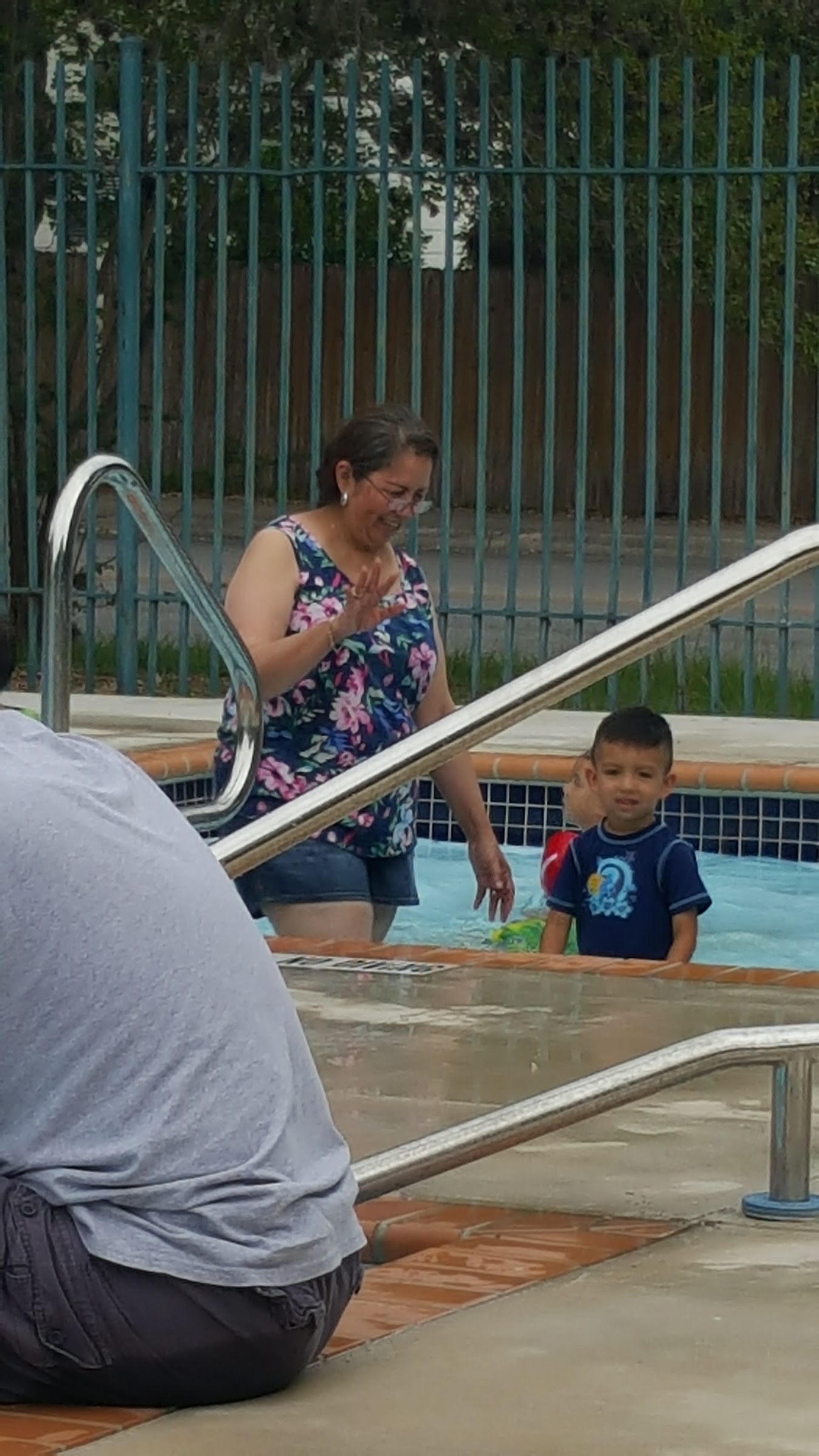Clean calm pool public pool and bathroom. Lifeguards are vigilant and engaged in the job. The pool is partially shaded on the deep end . They do 15 minute breaks where everyone has to get out of the pool every 2 hours. Pool depth ranges from 3ft to 8ft.