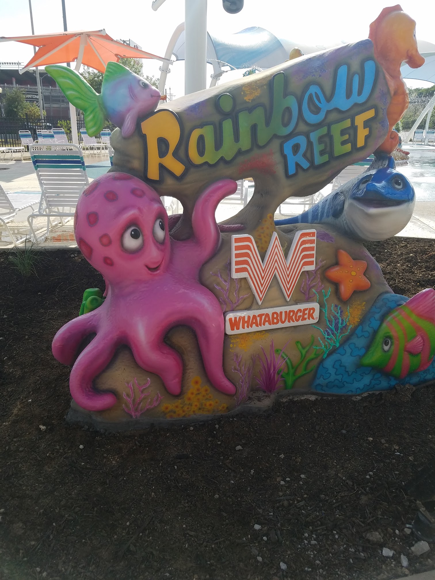 Rainbow Reef is an ultra-accessible water play area located within Morgan's Inspiration Island in San Antonio, TX. As part of the world's first fully inclusive splash park, it offers various interactive water features and splash elements designed to provide a fun and welcoming experience for guests of all abilities.