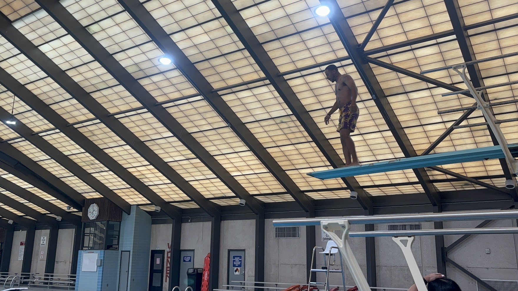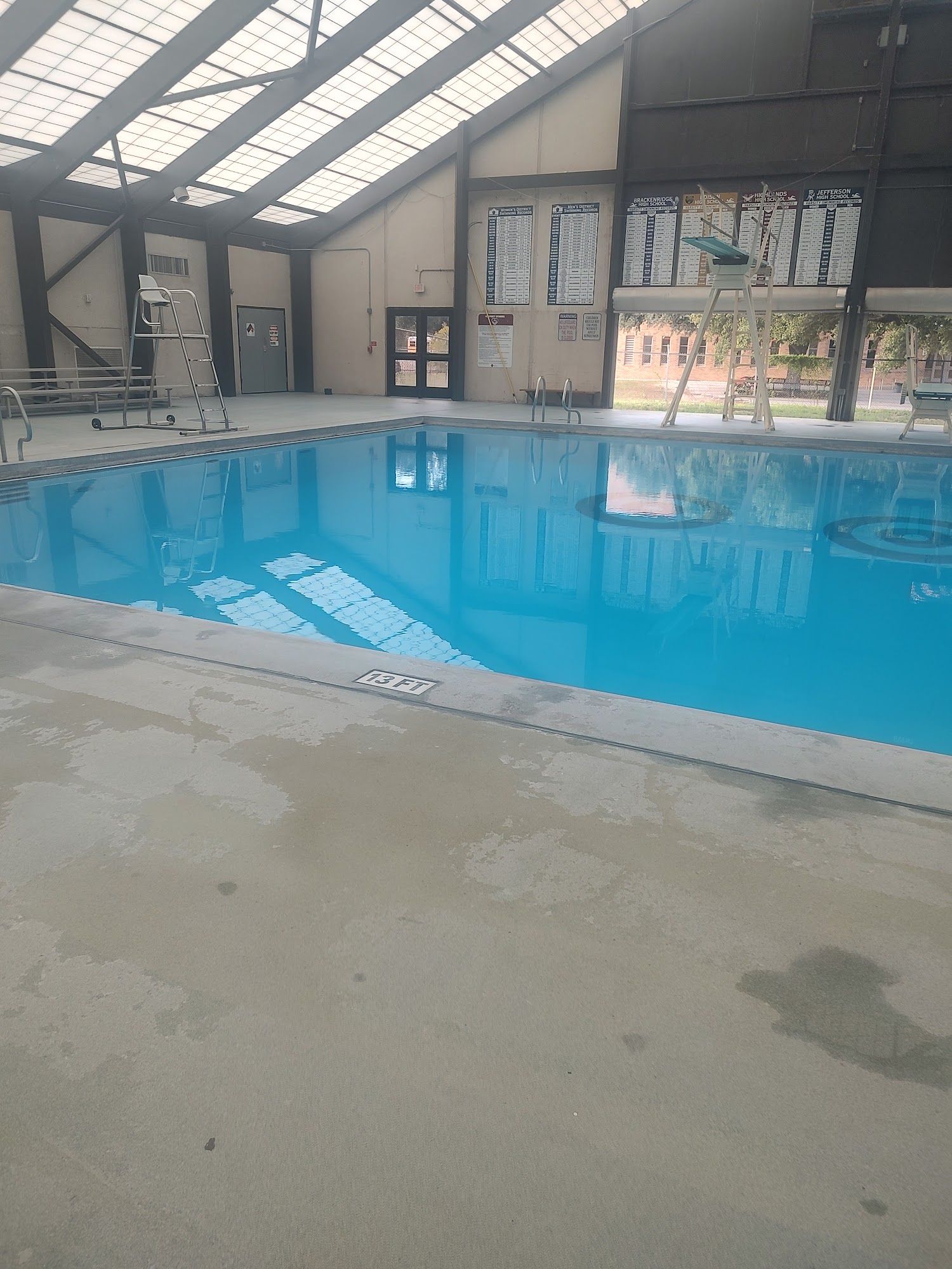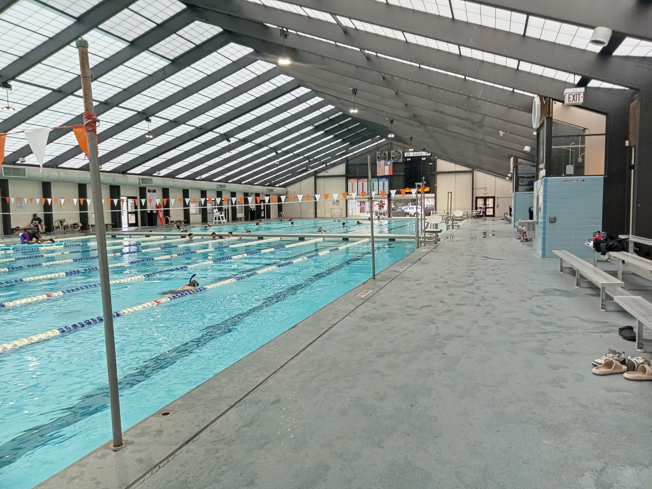 Great combination of shade + open airflow with the sides & partial roof opening. Main pool is a consistent 4.5feet throughout. Lap pool is separated at a slightly deeper 5feet & diving board is great with a small/large option in a 13ft pool. Admission is usually $4 for adults. Only nitpick is the water in the main pool leaves a really strong pool smell on you.