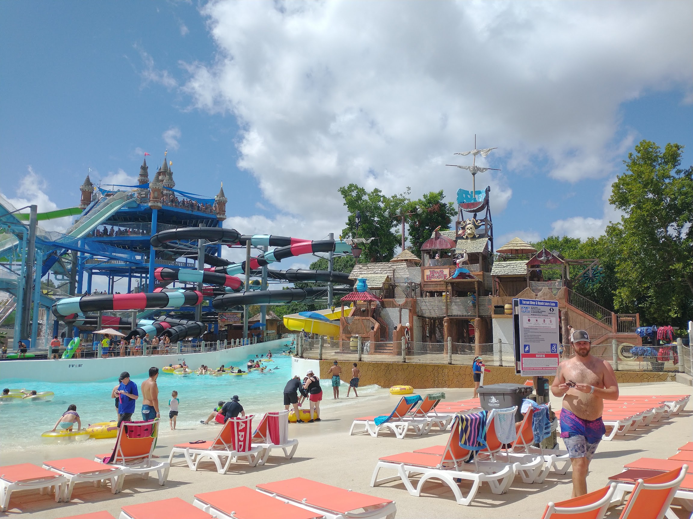 We arrived 20 min before they opened on a Wednesday and bought tickets online. We got in no problem and no wait. We heard that the east side park had the big water slides my kids were excited about so we decided to hit those first. That was a big mistake. My boys waited in line for ONE of those big slides for TWO hours. Not exaggerating. My daughter and I were in line at the other slide for an hour and a half. So by 1:15, we had only been on ONE thing. We are from out of town and didn’t bring coolers so we then waited in line for over THIRTY minutes to spend $115 on coldish not great burgers. So by 2:15 after being there at 10:45, we only had been on one slide. My kids were pretty discouraged and didn’t feel like it was worth the $350 we spent on tickets for the 5 of us. We decided to skip the big slides as they just weren’t worth it and we did the tube chute ones. They were really fun and we enjoyed them. We also enjoyed the lazy river which also was like a wave river. They thought the wave pool wasn’t awesome as it was really small and not that exciting as we have big ones where we are from. I think overall it was a bit disappointing as we traveled a ways and spent a lot of money to wait in long lines. We will not be returning.