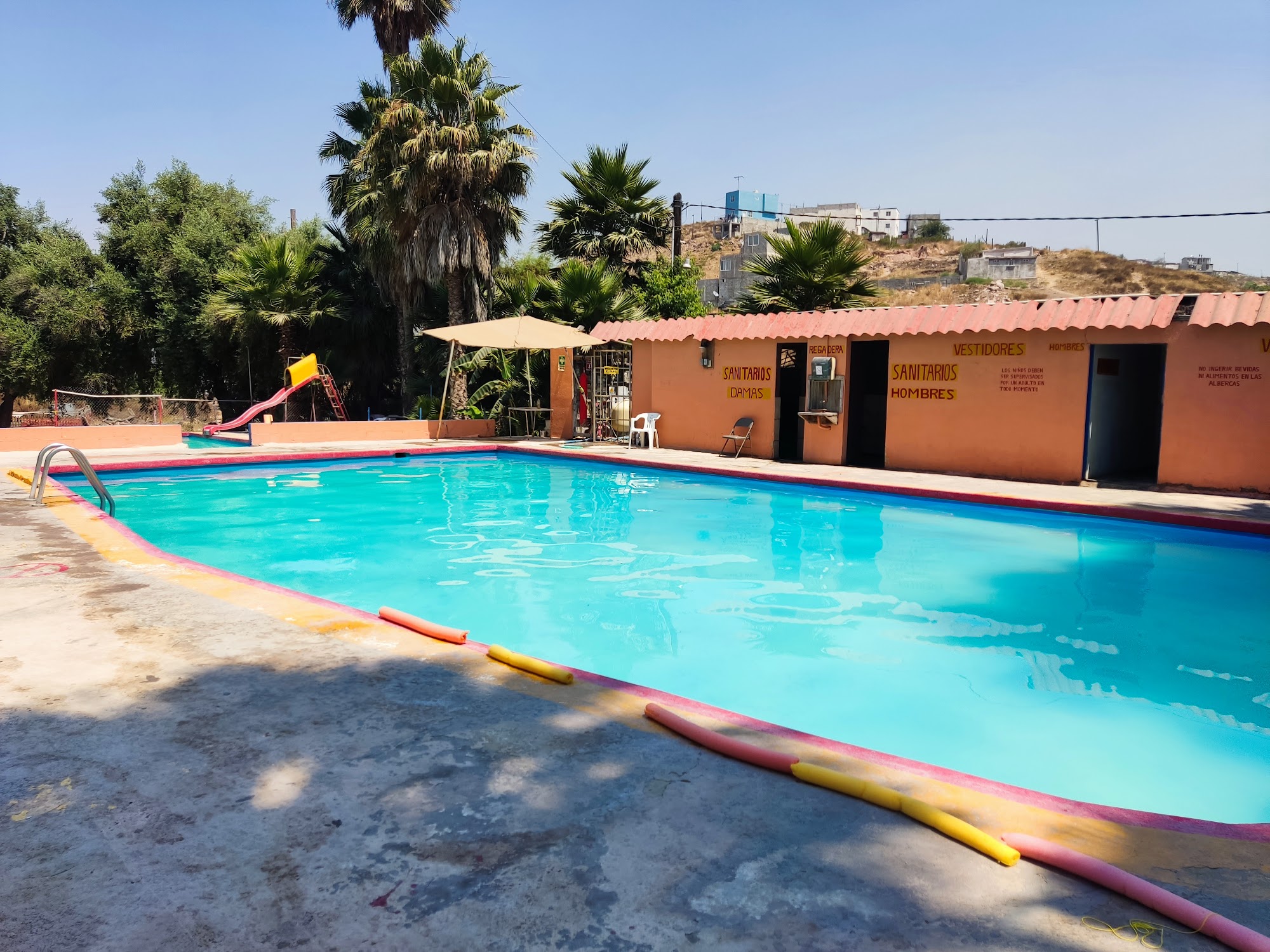 Albercas Rancho El Rinconcito is a family-friendly recreational park located in Tijuana, B.C., Mexico. It offers multiple swimming pools, water slides, and spacious green areas, making it a popular destination for outdoor activities, events, and parties. It provides a fun and refreshing environment for both children and adults.