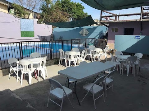 Salón de fiestas y reuniones. El tamaño es para una fiesta o reunión media a pequeña. Plus: estacionamiento frente a el y tiene alberca. Excelente recurso que le combinará precio y características.