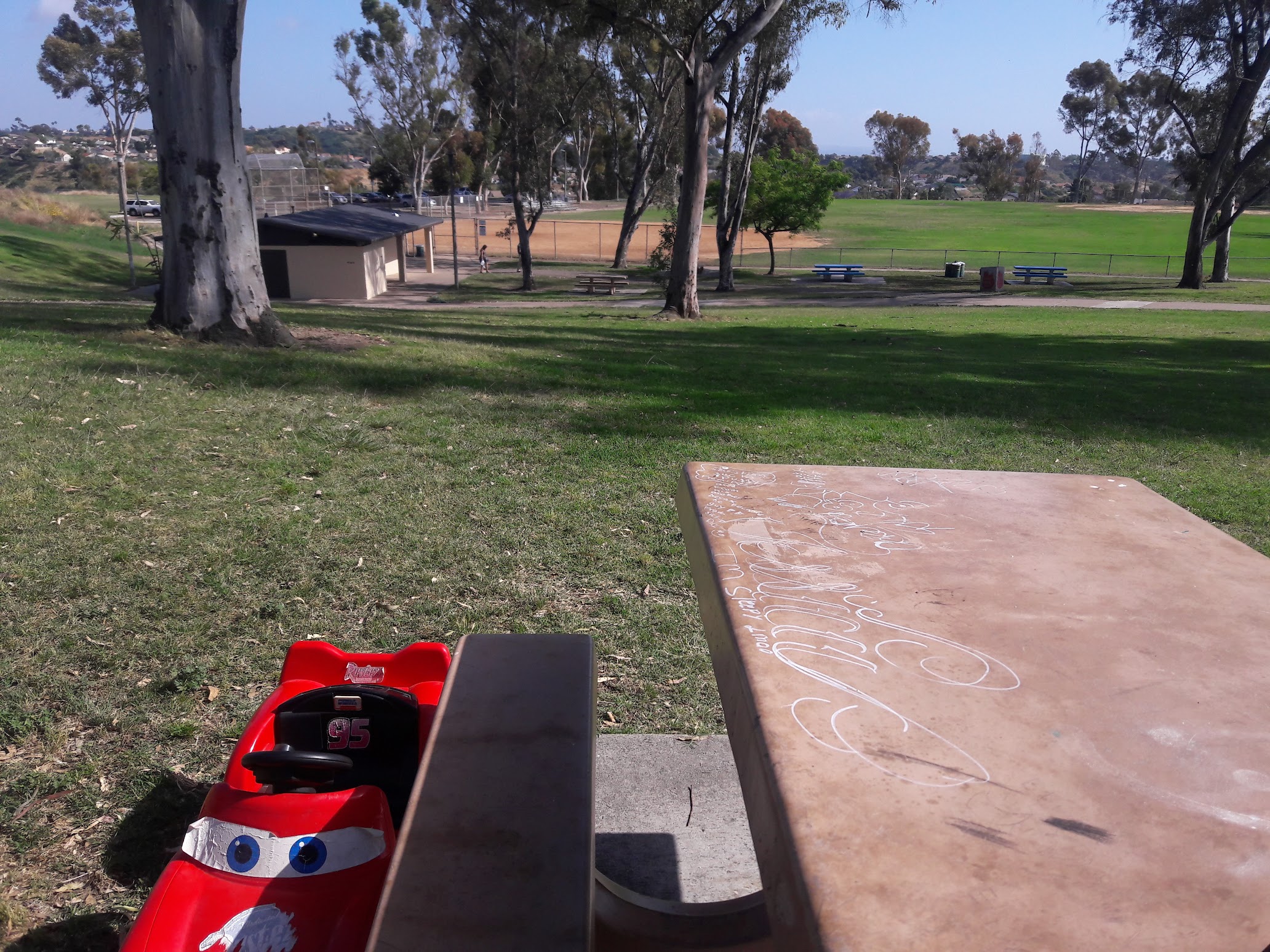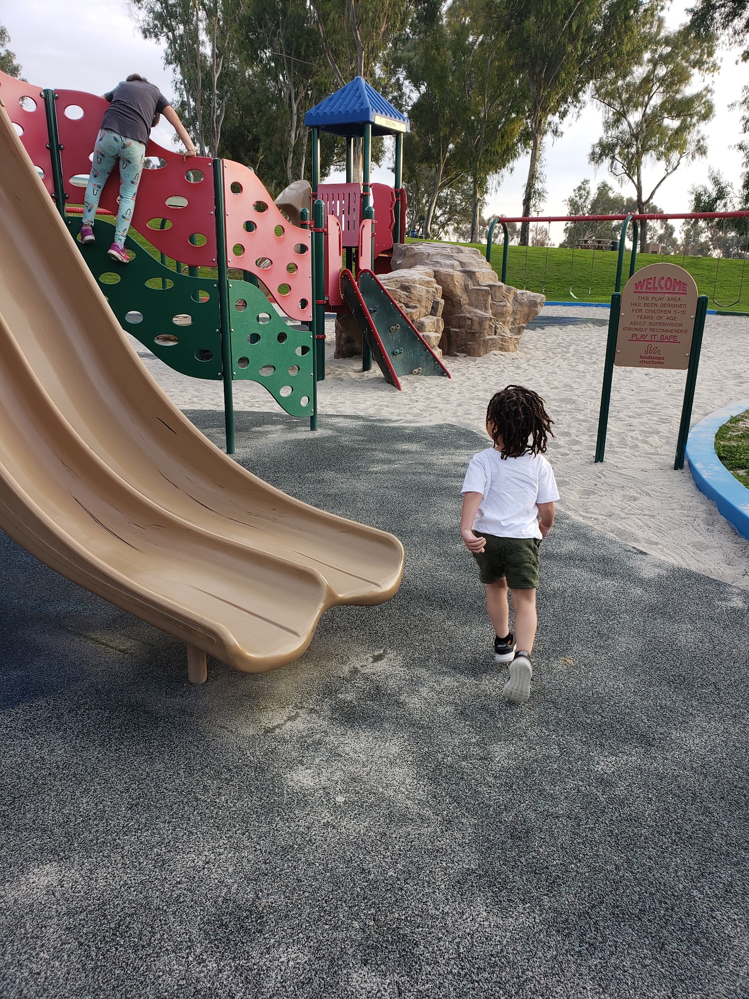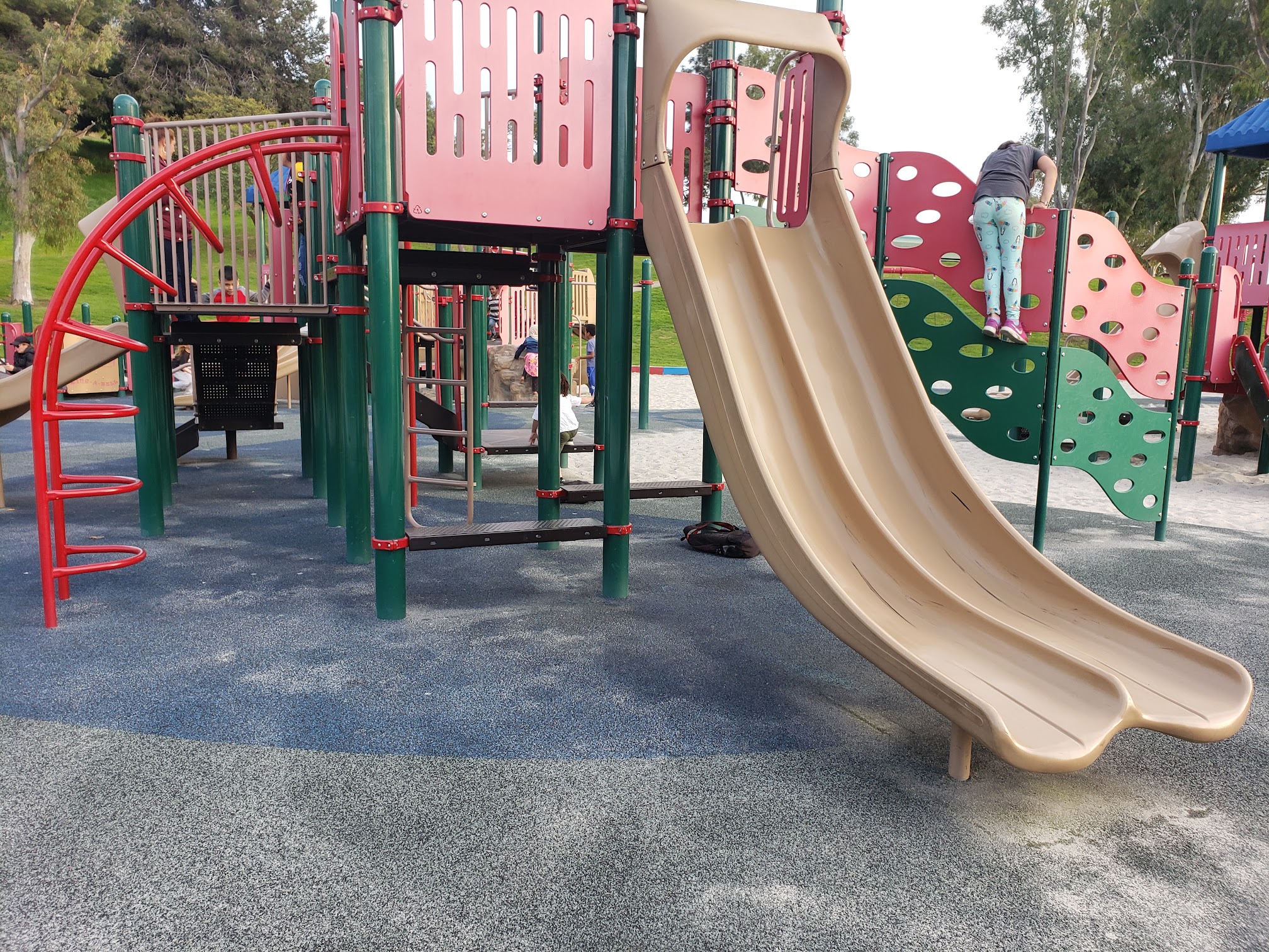 This is beautiful great scenery at the top of a walkway the park is full of adventures for children. The structures I haven't never seen plus its a recreation center so it has a pool, basketball, baseball and tennis courts. This park is giant. Good place to walk around for exercise.