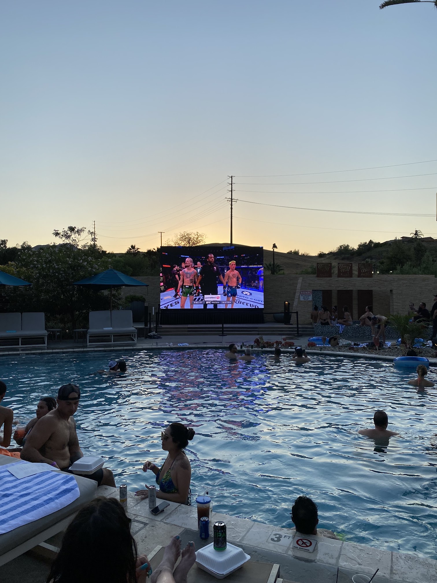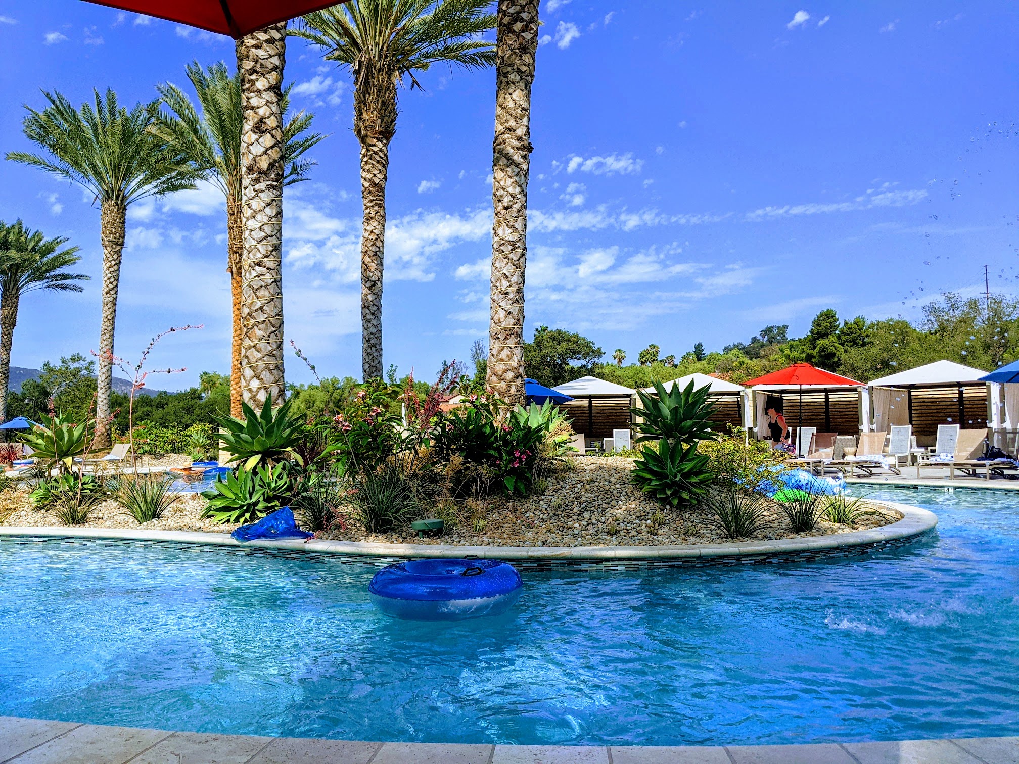 Pool and lazy river are nice, but JESUS CHRIST, there seems to be an effort to make people deaf by BLASTING the music so loud that conversation is impossible. Maybe I'm to old for this place, but this feels like and audio assault. There is no escape from the noise as they placed speakers everywhere and it goes non-stop. Actually got a bit of a headache from the over saturated bass. Maybe they should consider cranking out down a bit.