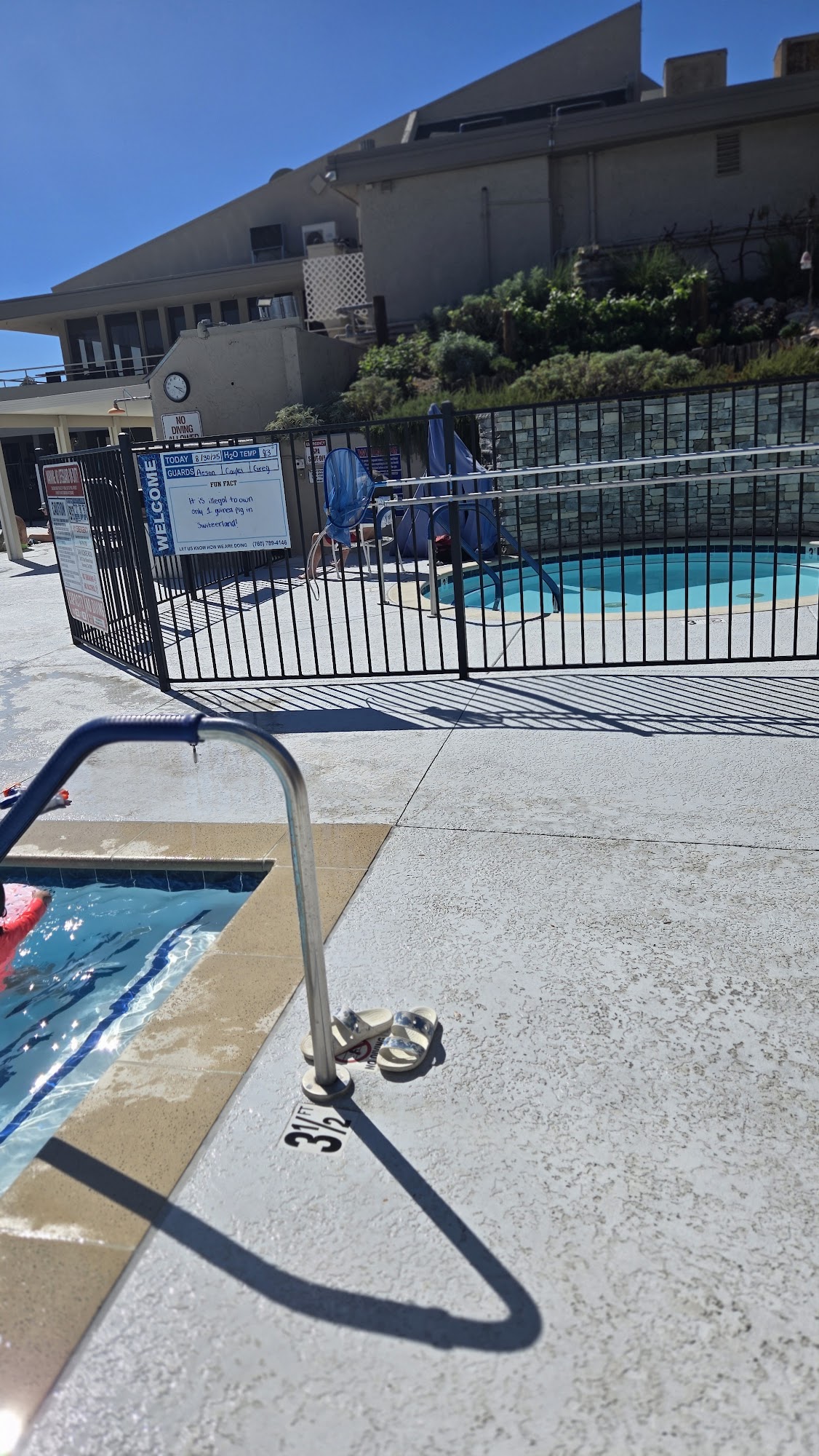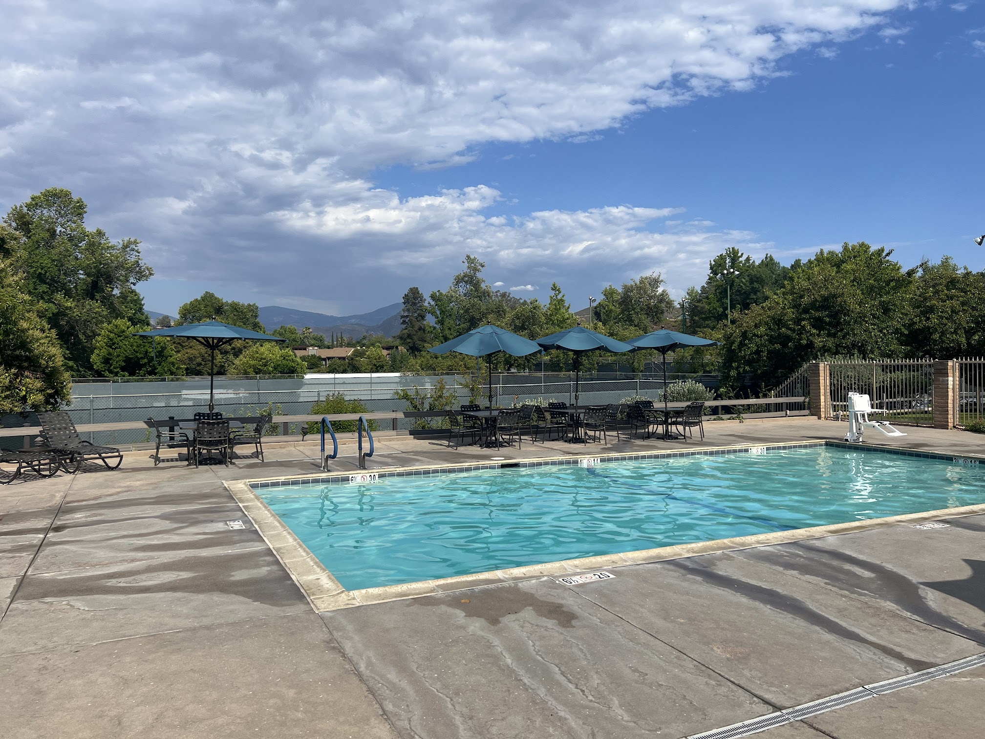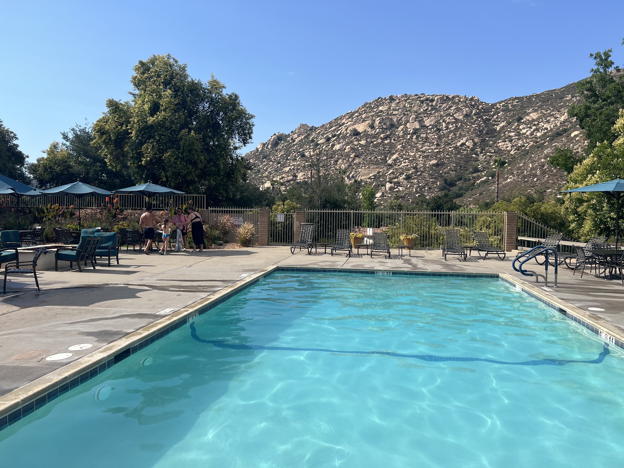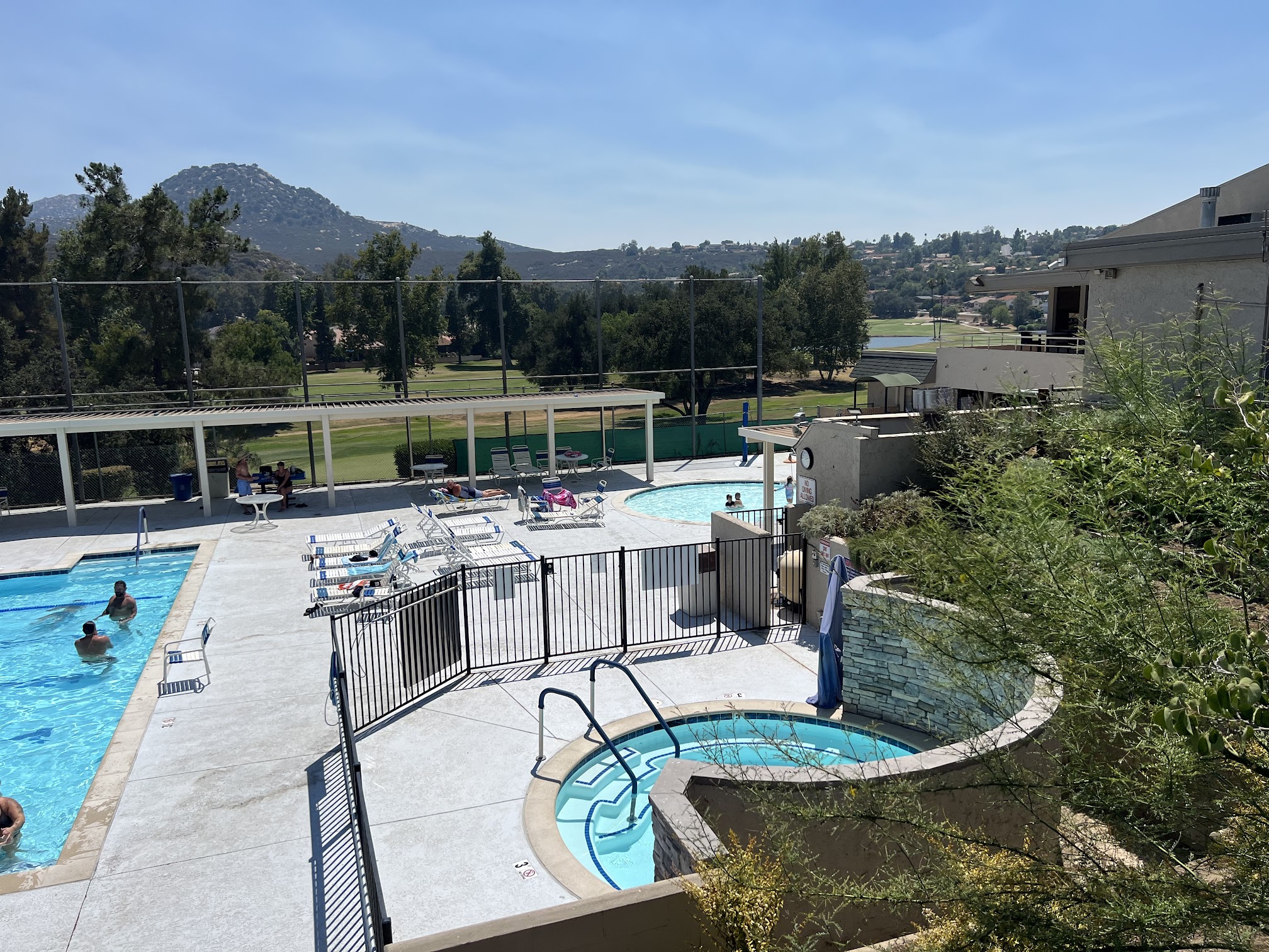 Inside the resort is nice and fairly well kept just outdated, but there is no excuse for the condition the pool is in. The pool is dangerously in need of new pool deck, and the jacuzzi needs to be eradicated of all the black mold surrounding its walls inside the tub. The residents pay a constant increasing HOA only to have the entire Ramona Swim team take up Every Single swimming lane (even though the front desk is convinced that they only take up 3 lanes) Monday-Friday, 2-8PM through out the whole year besides summer. The Swim Team leaders even like to command the residents about not using floating play devices inside the pool. Besides that there is a ton of potential with the beautiful mountainous landscape. Just in need of a complete renovation.