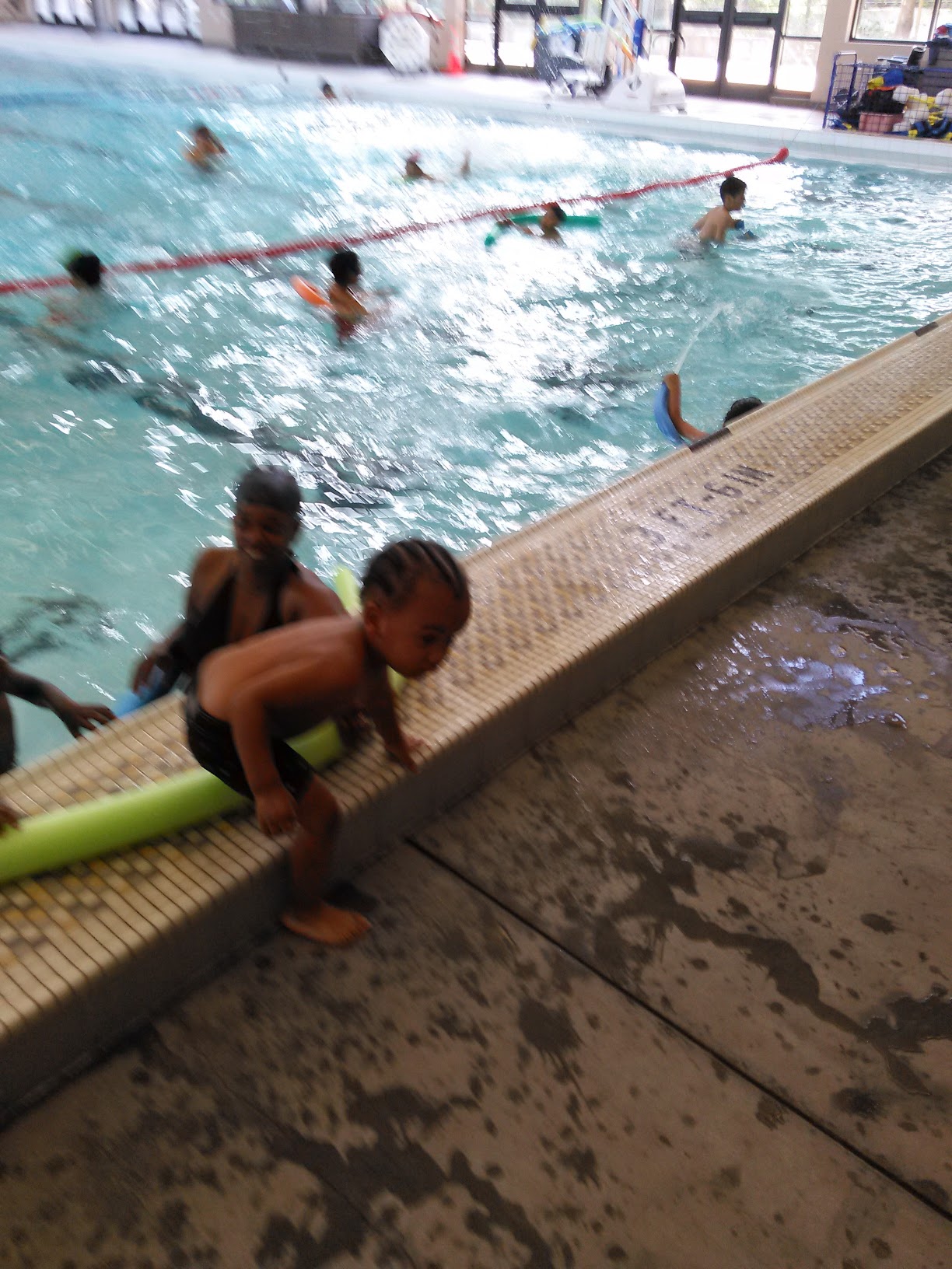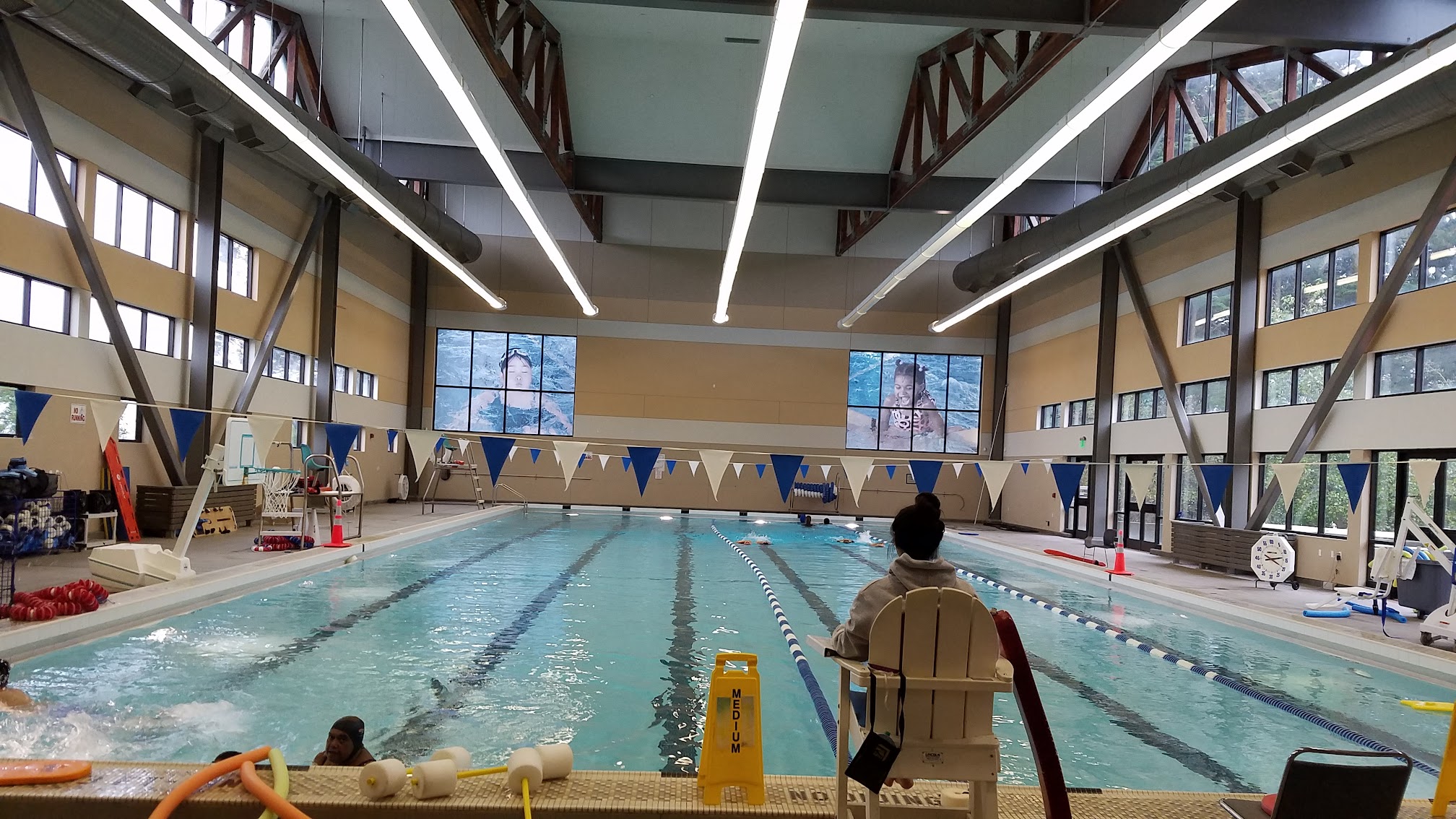 Good for kids who are taller and stronger swimmers, as this pool design doesn't have steps to get in, but ladders, and the shallow end isnt super shallow. It's a large beautiful pool divided in the middle for family swim, and into lanes for lap swim. It's typically clean. Staff are nice people. Only current issue is the swim suit spin dry machine is broken in the women's area.