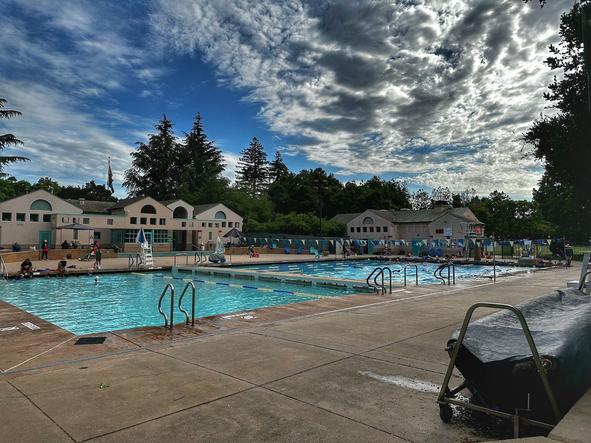 Outdoors and clean, family-friendly pool for lap swimming and recreation, with diving boards.
