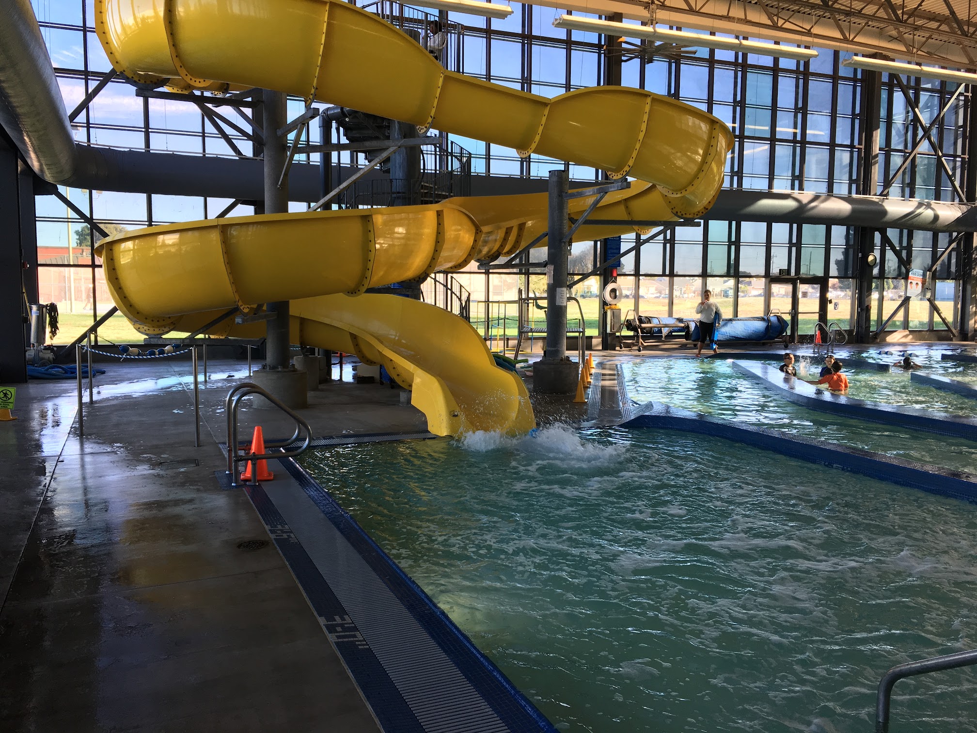 Awesome pool for little kids as there's a ramp entry that goes from ankle deep gradually to 4 ft. Fountains, curved shapes, not your typical lap pool. Water slide has been broken since I got here, so that was a bummer. Aside from being surrounded by encampments and stolen and stripped cars, the area within is gated and feels safe and clean. They have rec swim on weekends from 1-5, and the pool is indoor and heated.