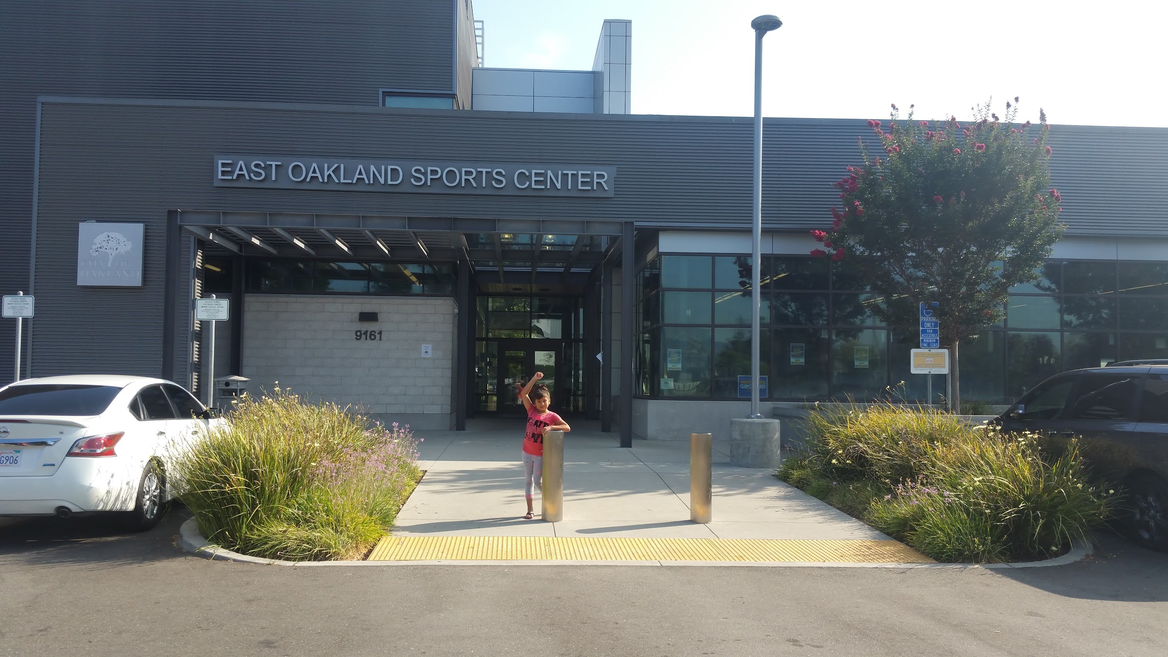 The aquatic center at the East Oakland Sports Center typically maintains its competition pool at approximately 80-82°F (26-28°C). A warm-water instructional/therapy pool is generally heated to a more therapeutic 90-92°F (32-33°C). A splash park is also available.