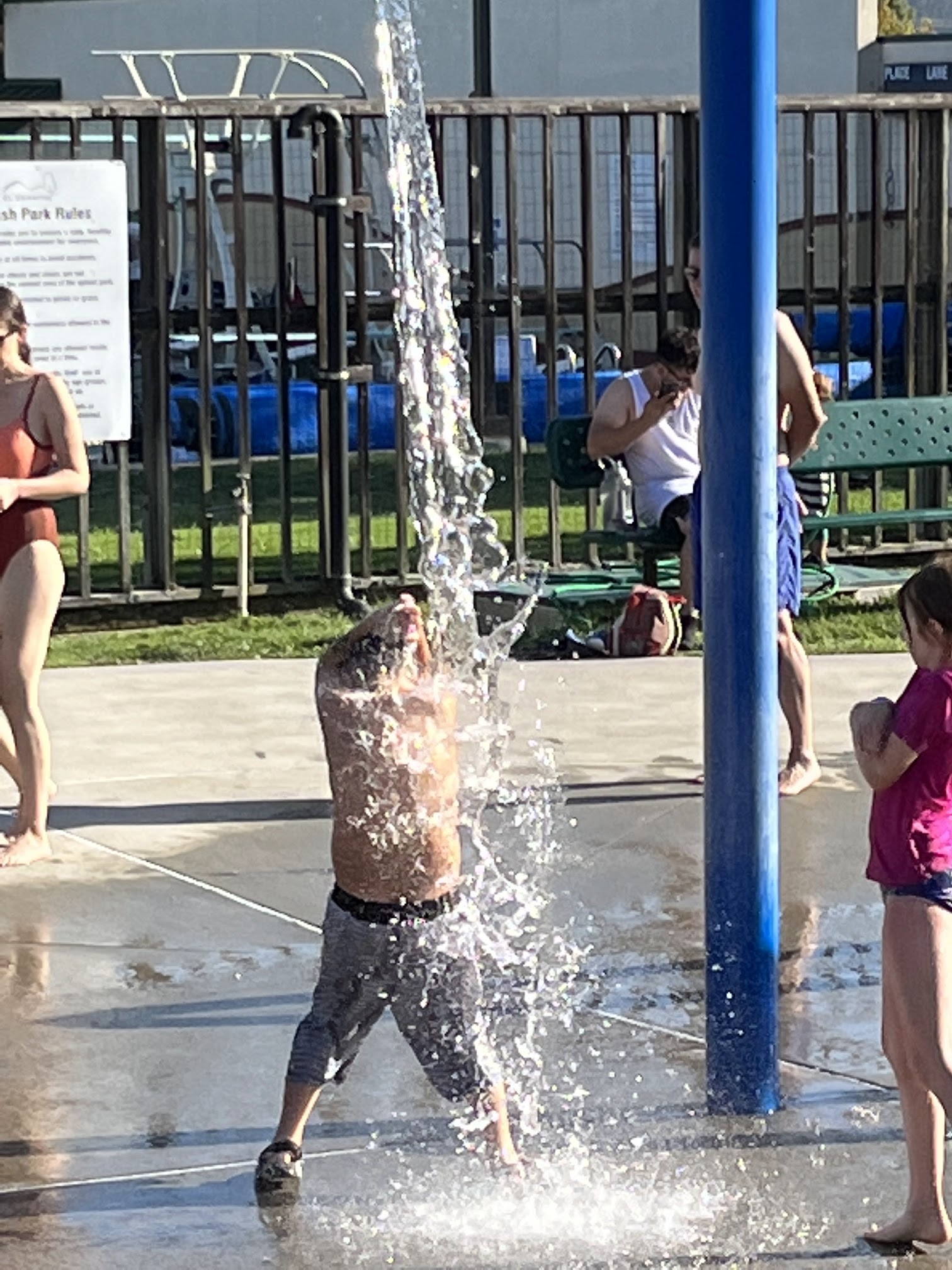 I sure wish the water was heated a little for the $3 splash pad. The water is freezing!!! The pools tend to be crowded so you can't bring pool toys. The water slide makes up for that. There's a shallow end for the smaller kids. Older children must be accompanied by an adult. You can jump from the diving board on the other side if you can pass the lap test. Showers in the locker rooms. Benches and lawn chairs poolside.