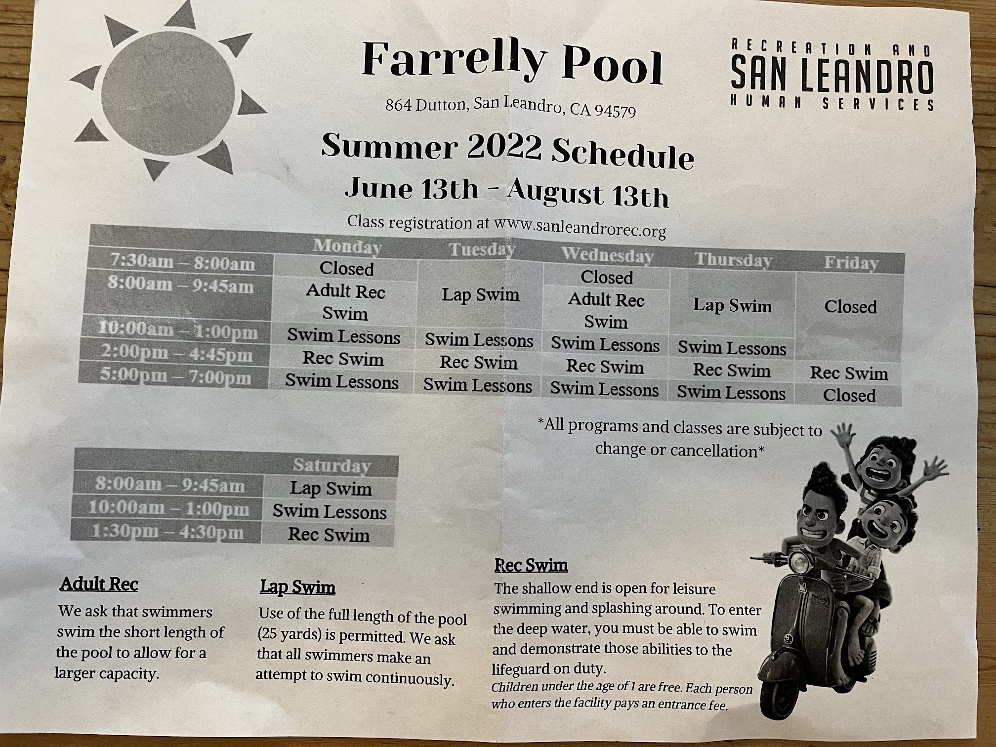 $6 admission per person. (I believe under 2 y/o is free) Saturday & Sunday Family Recreational Swim: 1:30pm - 4:30 My 3y/o had a blast! Don’t forget the sunscreen! 🧴 ☀️