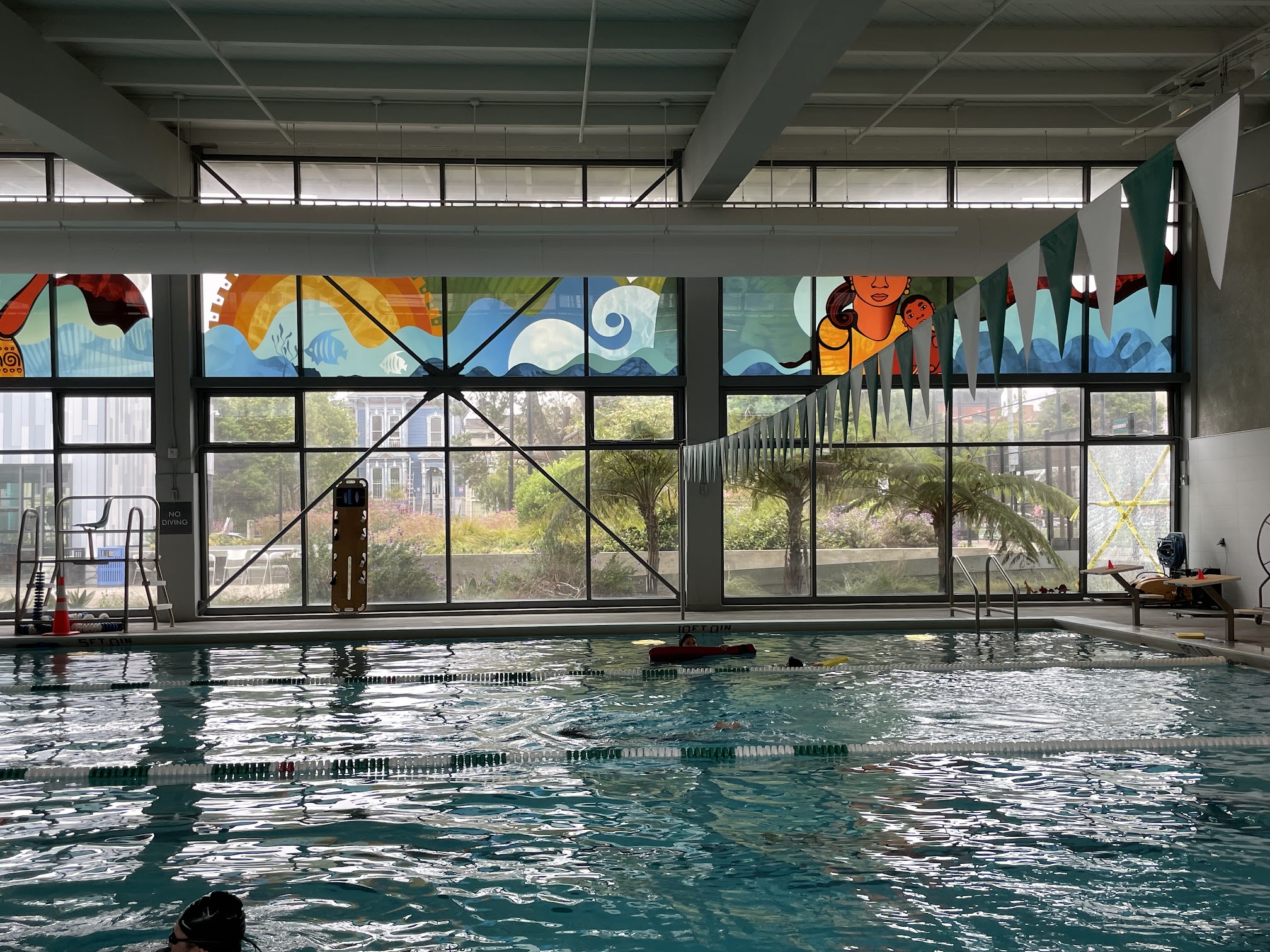 Pretty decent pool, except towel hangers in the showers are quite scant, the lap swimming might open slightly late (as opposed to on time or 5 minutes ahead of time to allow time to change into your swimming suit), and the cost is pricey: was $7 for a drop-in, now $8. If you went every day in the month, that'd be over $150 (they're closed Sundays and, very oddly, Mondays). The schedule is a bit chaotic and extremely restricted, with no consistent times every day for lap swimming, making it difficult to develop a healthy, easy-to-follow routine. The pool opens relatively late and closes relatively early, there's little to no chance for people who work a regular 8 am-5 pm shift to come swim here (considering transportation time before and after work to and from the pool), combined with the fact that they're closed two days per week. This pool (and all City pools) are *severely* underutilized in spite of the high demand. It's uncomfortable and potentially risky to swim with 4+ people per lane -you have to be on the lookout *constantly* to make sure you don't bump into people, and it's hard to get into a rhythm with swimmers of different skill, style, stamina, age, and speed, all crammed into the same lane (the lane divisions by speed are intended to help, but ultimately, you still have diversity of swimmers in each lane). A national lifeguard shortage is purported as the reason for the chaotic, restricted hours, but I don't understand why adults can't simply sign a waiver and come swim at their own risk -like at gyms that have swimming pools or the public beaches (neither have life guards). To promote health in the community, the pool should be open 7x per week, and could be open for unguarded, uninterrupted adult lap swim from 5:30 am to 7:30 am + 5:30 pm to 8:30 pm on workdays. Even public high schools in Daly City and Pacifica open their pools 7x per week... and somehow SF can't do it? Plenty more examples in other states. It's embarrassing for the City, honestly.