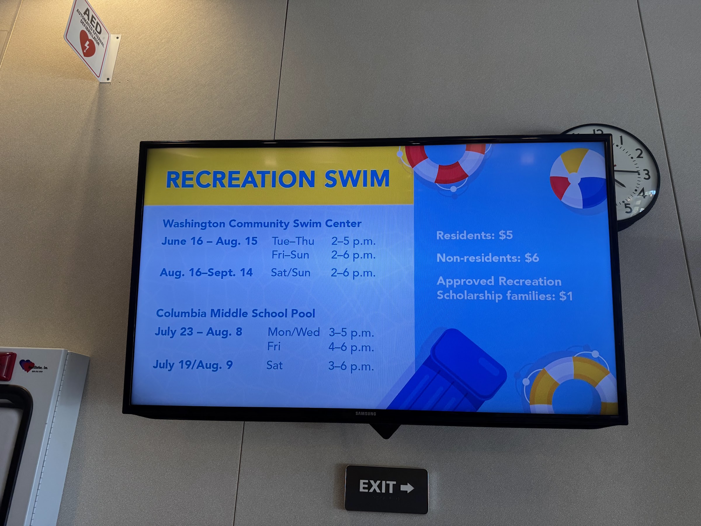 Pros: Nice staff. Good location for the neighborhood. Updated within the last two years. Parking is easy in the lot. Cons: short hours (1-4 on weekends starting June 1). Kids are all charged at the kid rate regardless of age. No kid pool or slides, etc. No diving board (min needed is 11', this pool is only 9' at the deep end). Locker rooms are closed until middle school is out of session for the summer so no showers, lockers, etc. No shade around the pool so the sun is very strong.