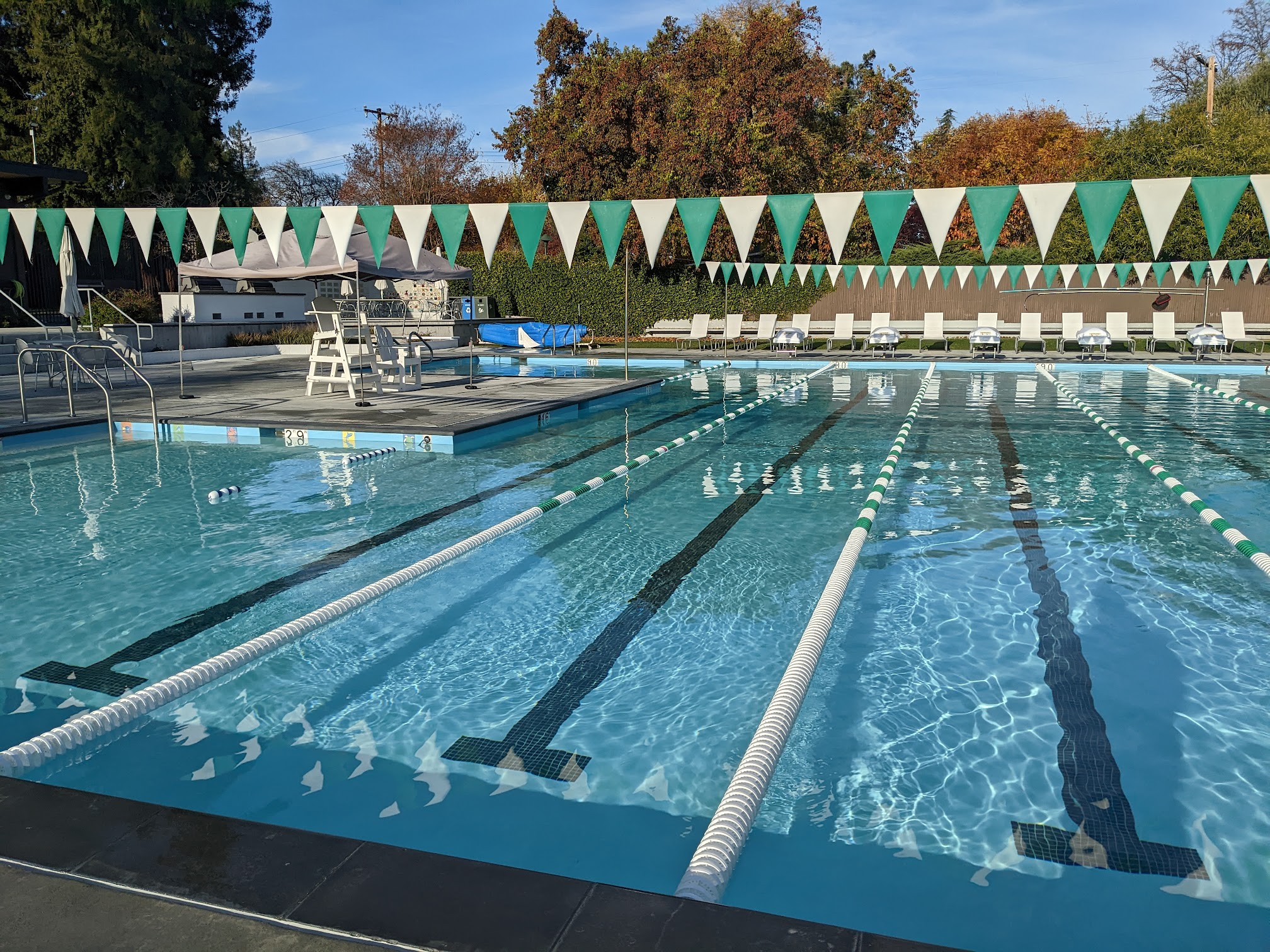 Community pool hosting swim lessons and a swim team, as well as events and yoga classes.