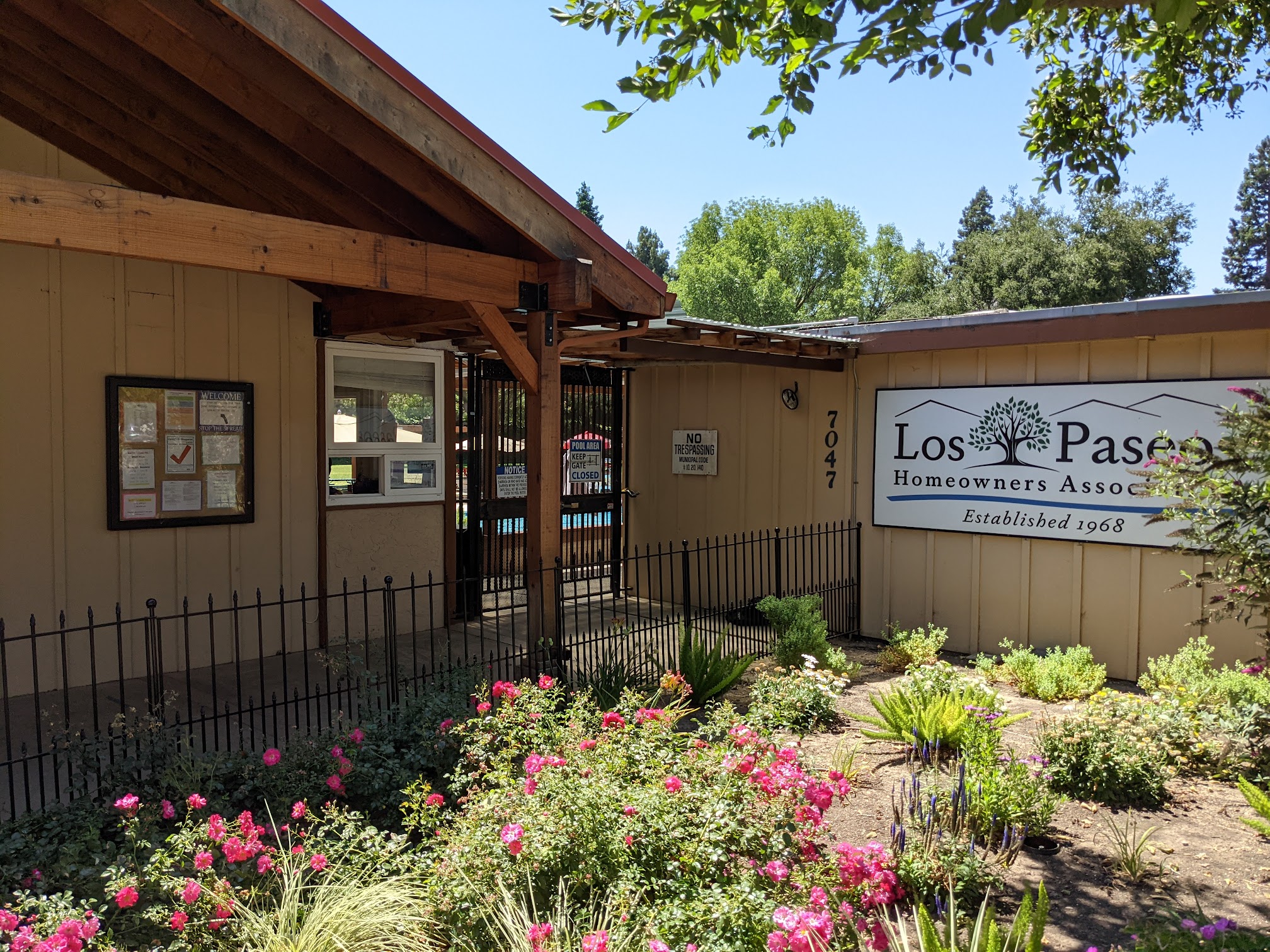 Los Paseos Homeowners Association, located at 7047 Vía Ramada, San Jose, CA 95139, is a residential community association responsible for managing common areas and amenities for its residents. These amenities typically include a swimming pool, spa, tennis courts, basketball court, and a clubhouse, fostering a community-oriented living environment.