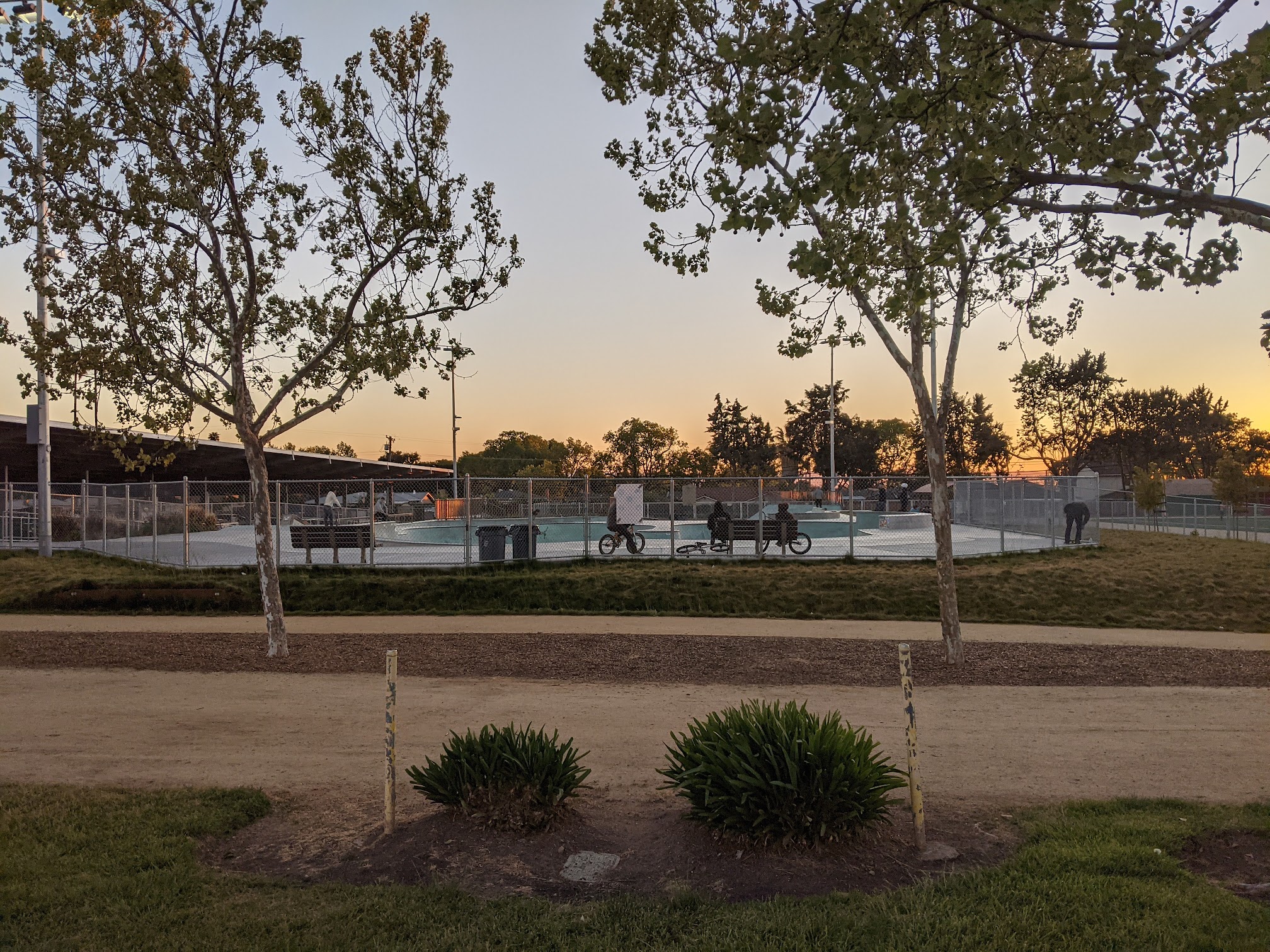 Very nice place to ride Skateboard, Scooter, BMX/Bike, Roller Blades, or Quad Skates. No motorized equipment allowed. No Dogs. Wear pads. Surface has great traction, and dries off well after rain.