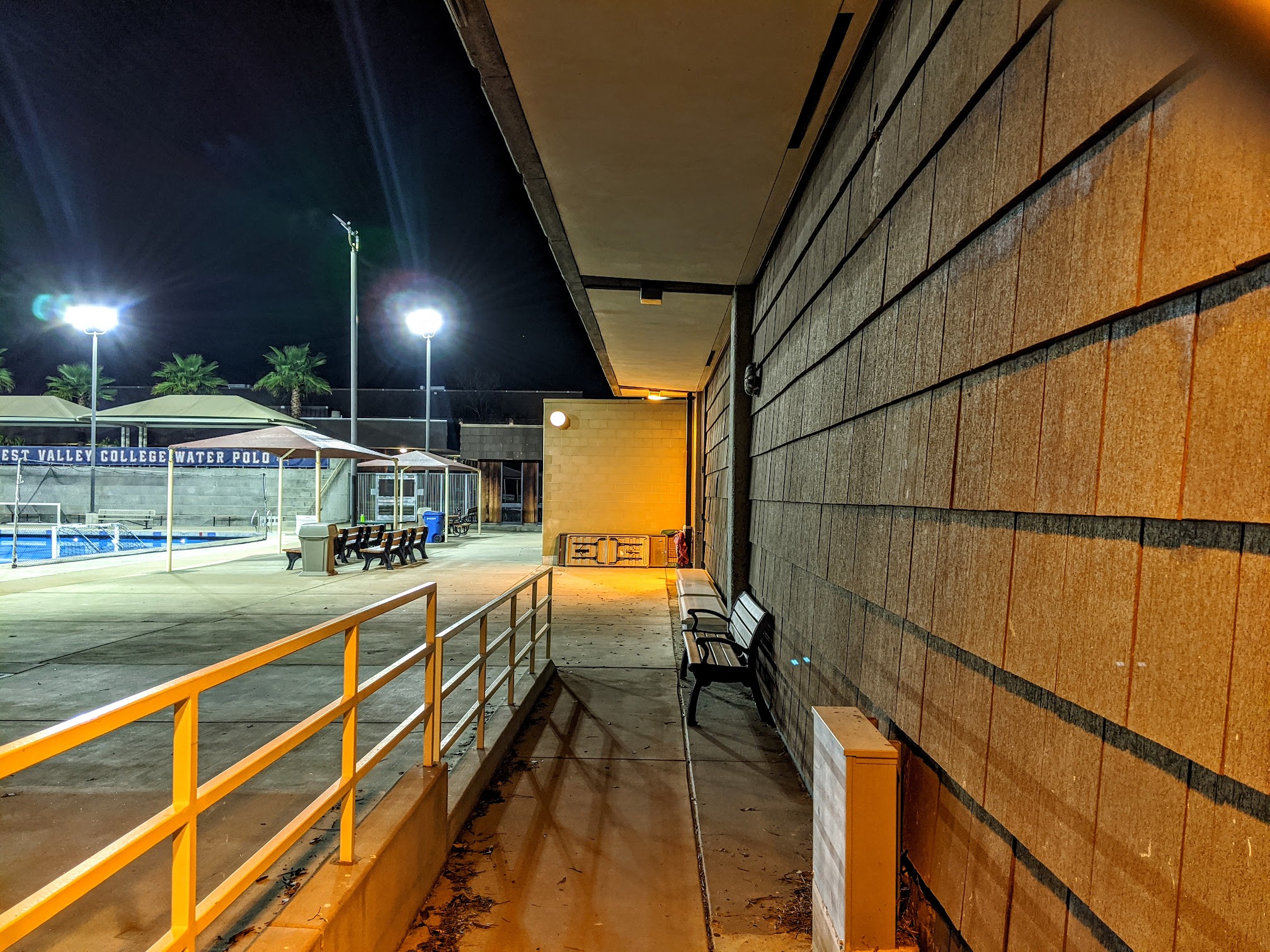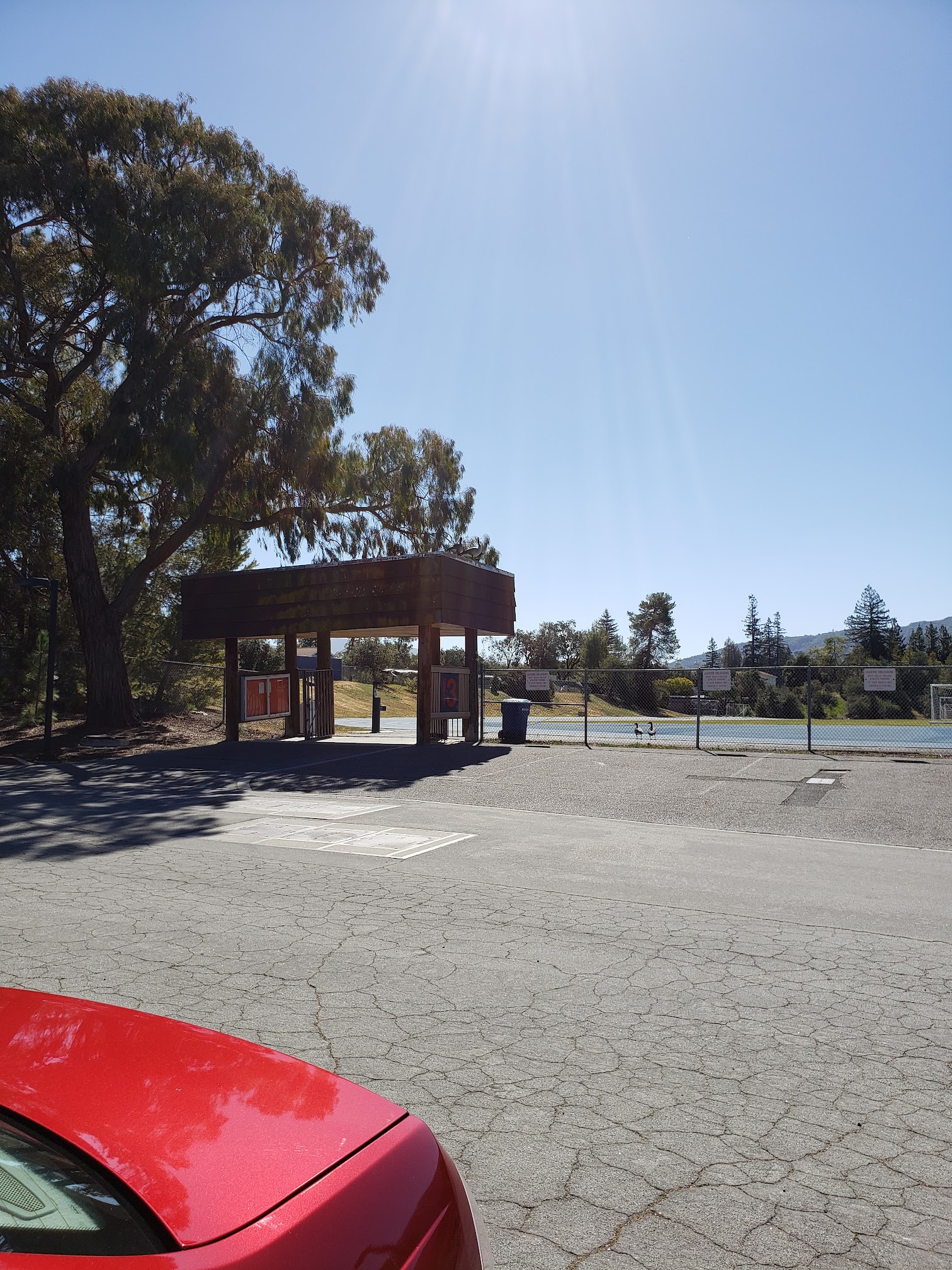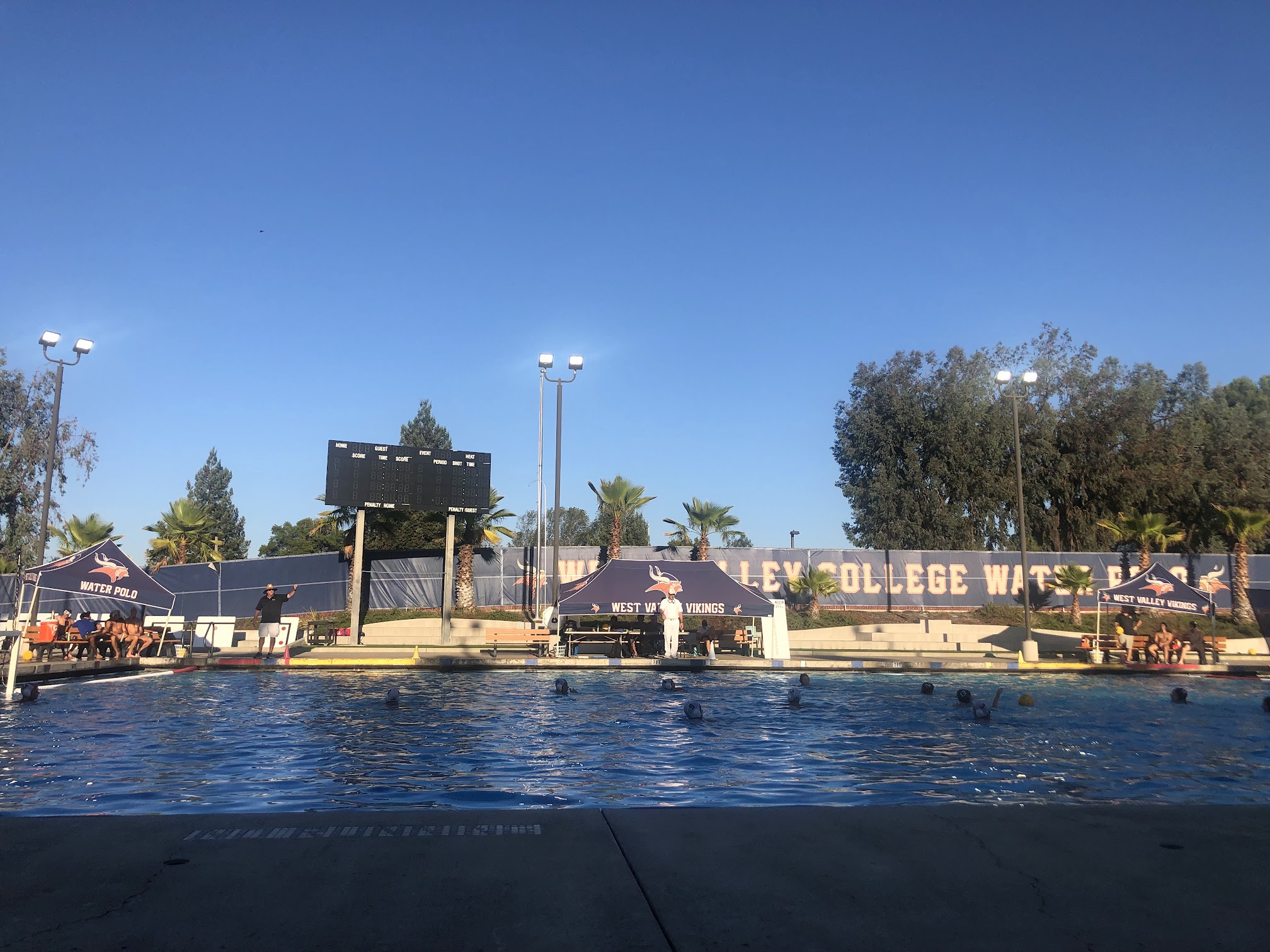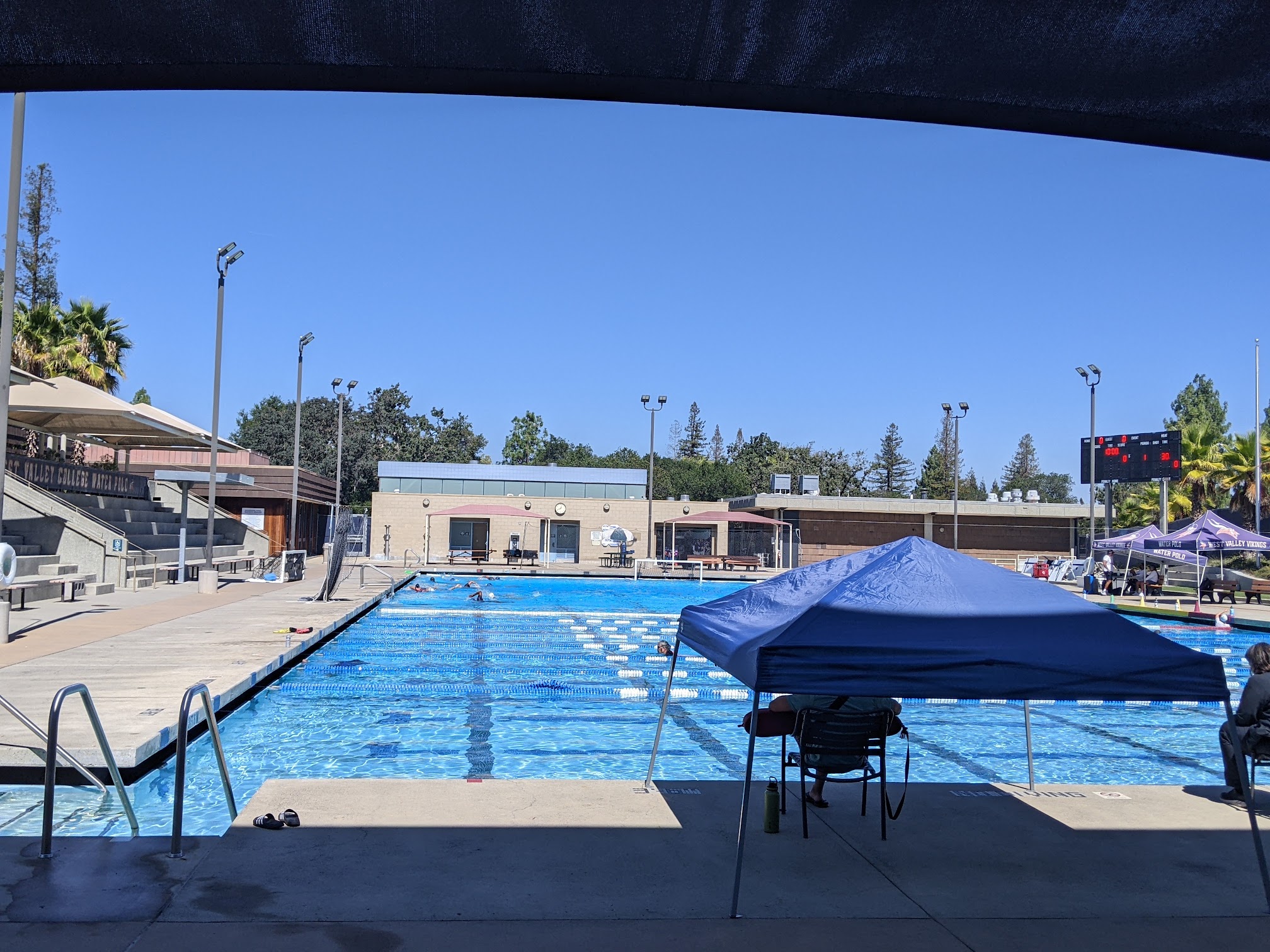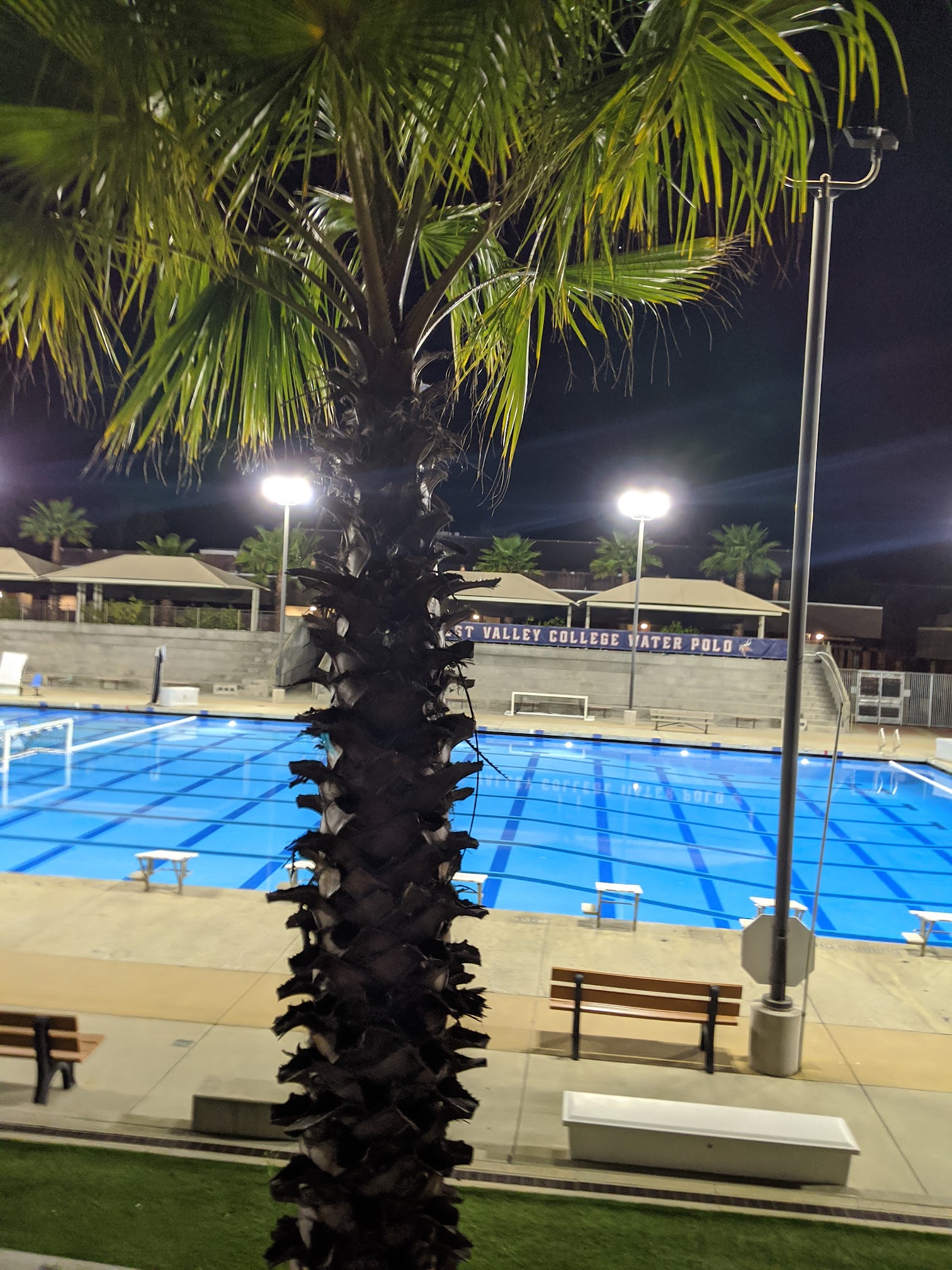 Nice pool with warmup area. We traveled here for water polo. The spectator seats are covered with sail cloth which is really nice. Many pool deck leave spectators to bake in the sun. The campus is nice and clean. I haven’t figured out the parking yet. I’m always walking a 1/4 mile to get to the pool from the parking area. The school just installed solar, but needs to install EV chargers now. There was a drinking fountain and bottle filling station near the pool which was nice.