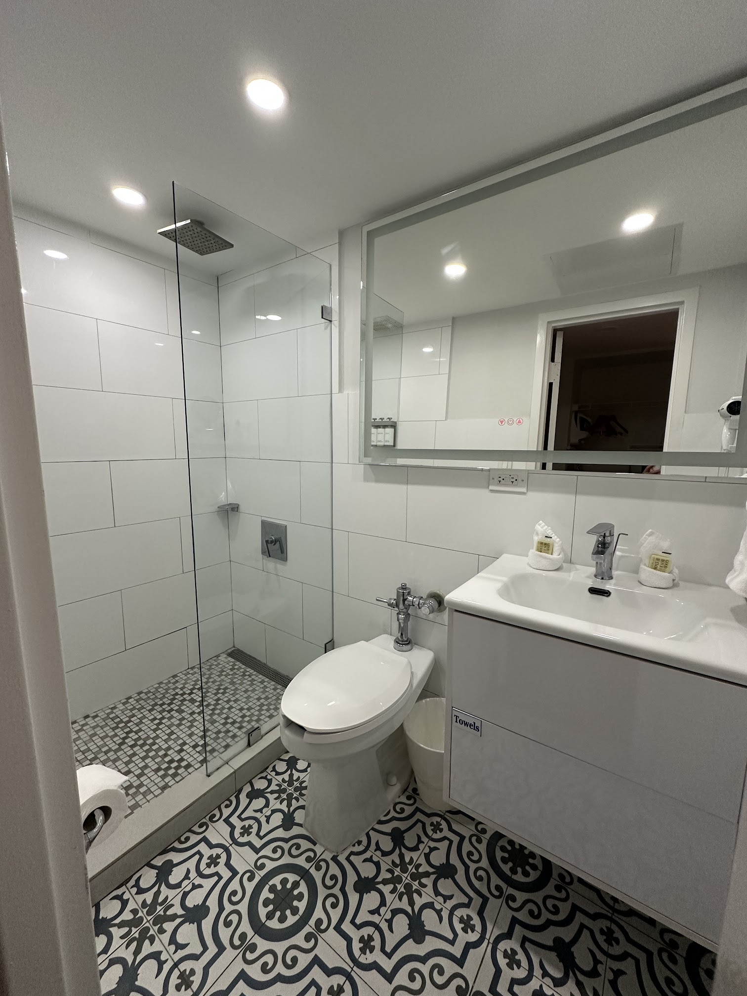 The only thing we stayed here just because our flight arrived around midnight. Because this hotel literally is in airport. Room very small and basic. In our room they were huge microwave on the table and didn’t have fridge. There were hair dryer, small sink and walk in shower. The pressure water in the sink has more than in the head shower. Breakfast was included, the dining was kinda spacious. I just wish they offered more their traditional breakfast with an options make your own omelette bar since we’re in PR. Unfortunately they only had basic continental breakfast similar like in the U.S. With our experienced everyone that works here was friendly.