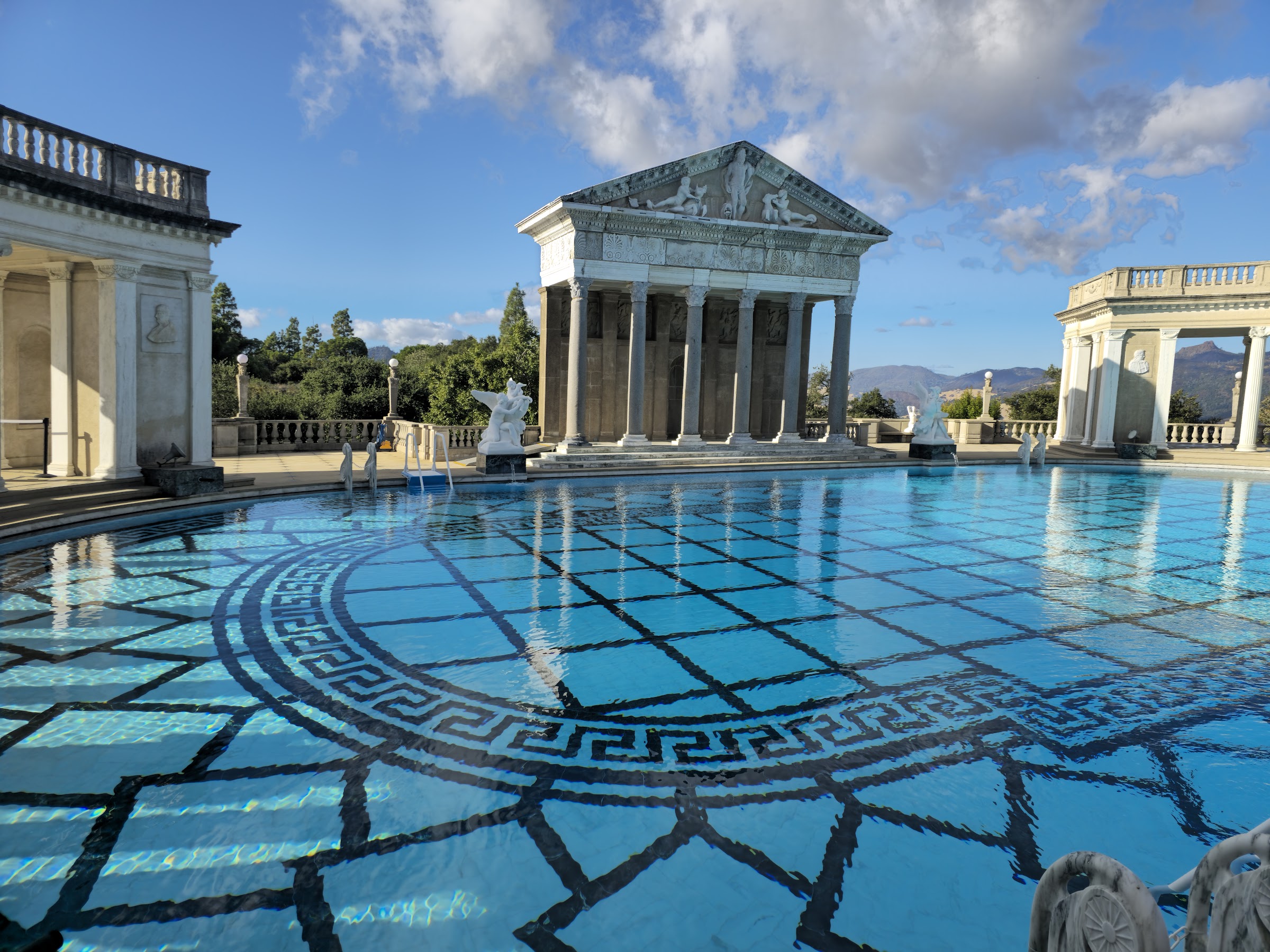 The Neptune Pool at Hearst Castle is an absolutely stunning oasis that epitomizes the grandeur and vision of William Randolph Hearst. As one of the most iconic features of the estate, this breathtaking pool is a true masterpiece of architecture and design, seamlessly blending with the surrounding landscape. Originally built in the 1920s, the Neptune Pool underwent several renovations, with the most significant one occurring in the 1930s. Hearst envisioned a lavish space that would not only provide a place for relaxation and recreation but also serve as a backdrop for extravagant gatherings. The pool is adorned with classical sculptures, ornate columns, and a stunning marble deck, all of which contribute to its enchanting atmosphere. The design of the Neptune Pool reflects the Mediterranean Revival style that characterizes much of Hearst Castle. Its striking blue waters are surrounded by lush greenery and meticulously landscaped gardens, creating a serene and picturesque environment. The pool also features a stunning backdrop of the Santa Lucia Mountains, further enhancing the breathtaking views. What truly sets the Neptune Pool apart is its unique architectural elements, including the grand terrace and the eye-catching statues that adorn the area. The pool has a remarkable depth of 105 feet, making it not only a visual delight but also a place where guests could enjoy leisurely swims. Throughout its history, the Neptune Pool has been the site of lavish parties and gatherings, hosting many of Hearst's celebrity friends, including Hollywood icons. The allure of the pool continues to captivate visitors today, providing a glimpse into the luxurious lifestyle that defined Hearst Castle. When visiting Hearst Castle, taking a moment to soak in the beauty of the Neptune Pool is an absolute must. Whether you're lounging by the edge, snapping photos of the stunning surroundings, or simply enjoying the tranquility, the Neptune Pool offers an unforgettable experience that transports you to a bygone era of glamour and sophistication. Its incredible beauty and rich history make it a highlight of any visit to Hearst Castle!