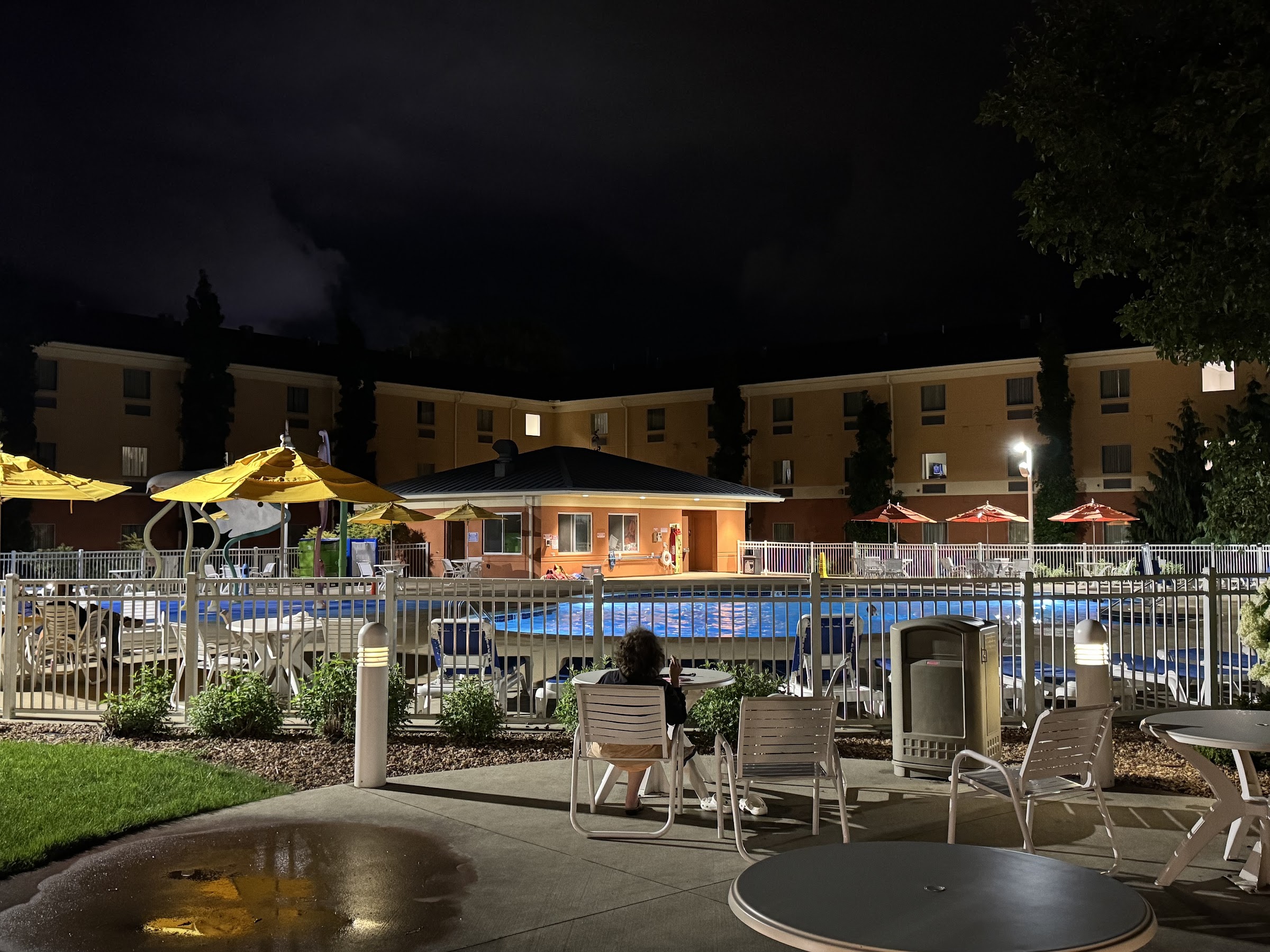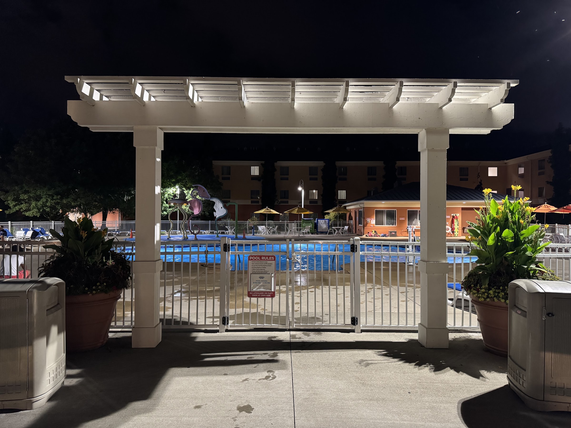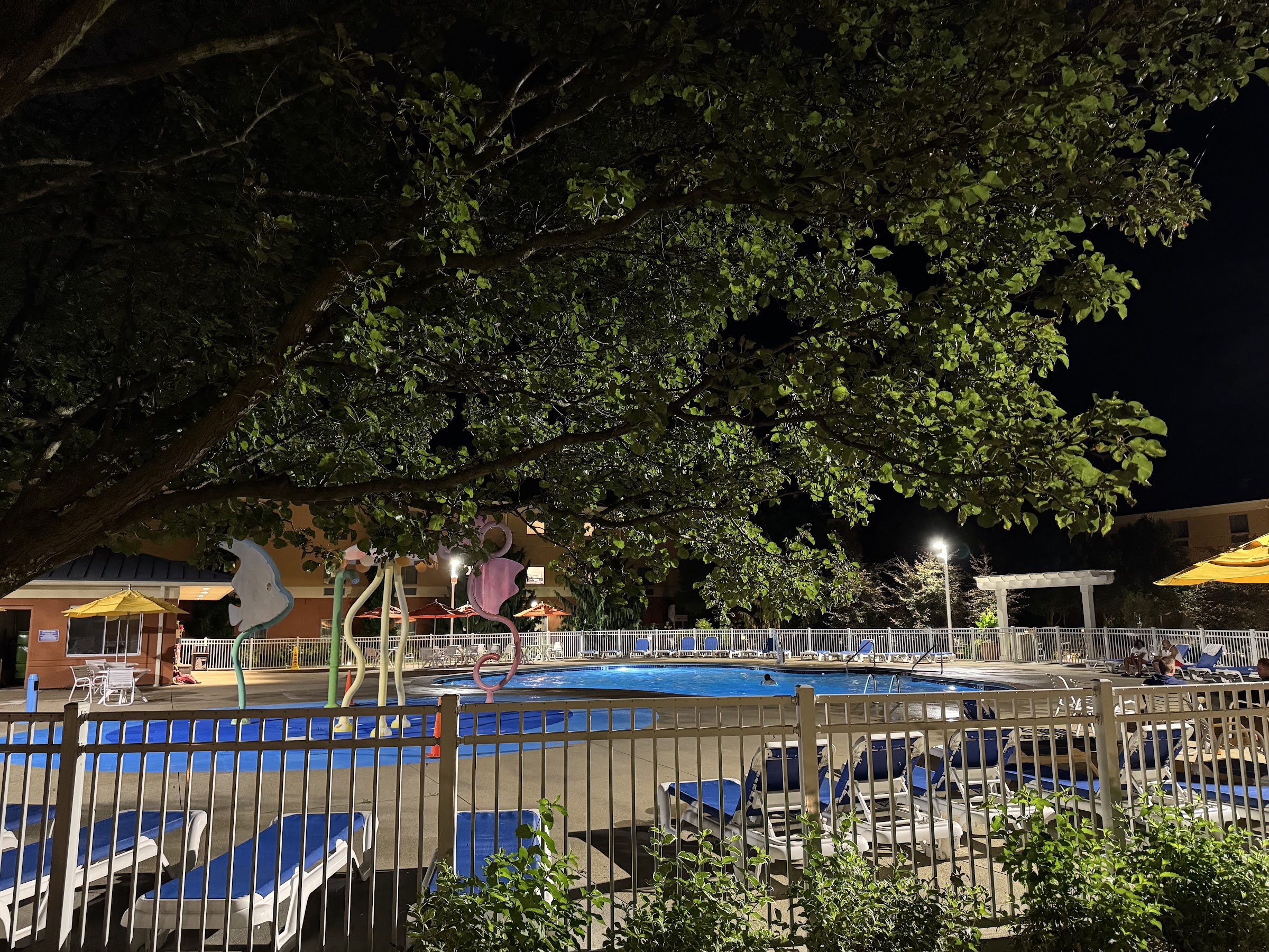 A nice pool with tons of seating, a splash pad and a washroom. The pool has a volleyball net and is pretty big. It isn’t very deep. Only about 4 feet throughout the whole pool. Overall a good hotel pool and splash pad