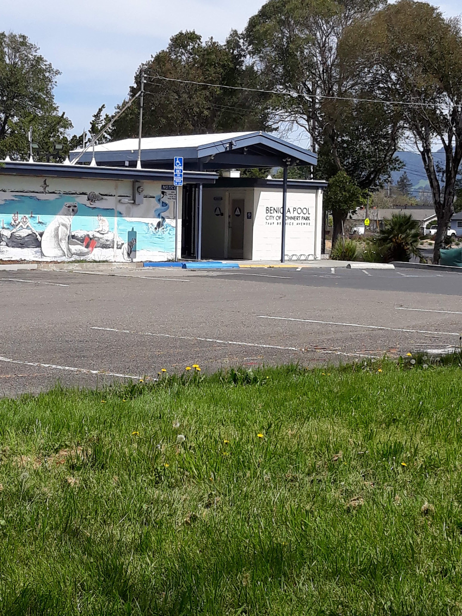 The pool at Benicia Pool is heated and consistently maintained at a comfortable temperature of 82 degrees Fahrenheit (approximately 28 degrees Celsius) year-round.