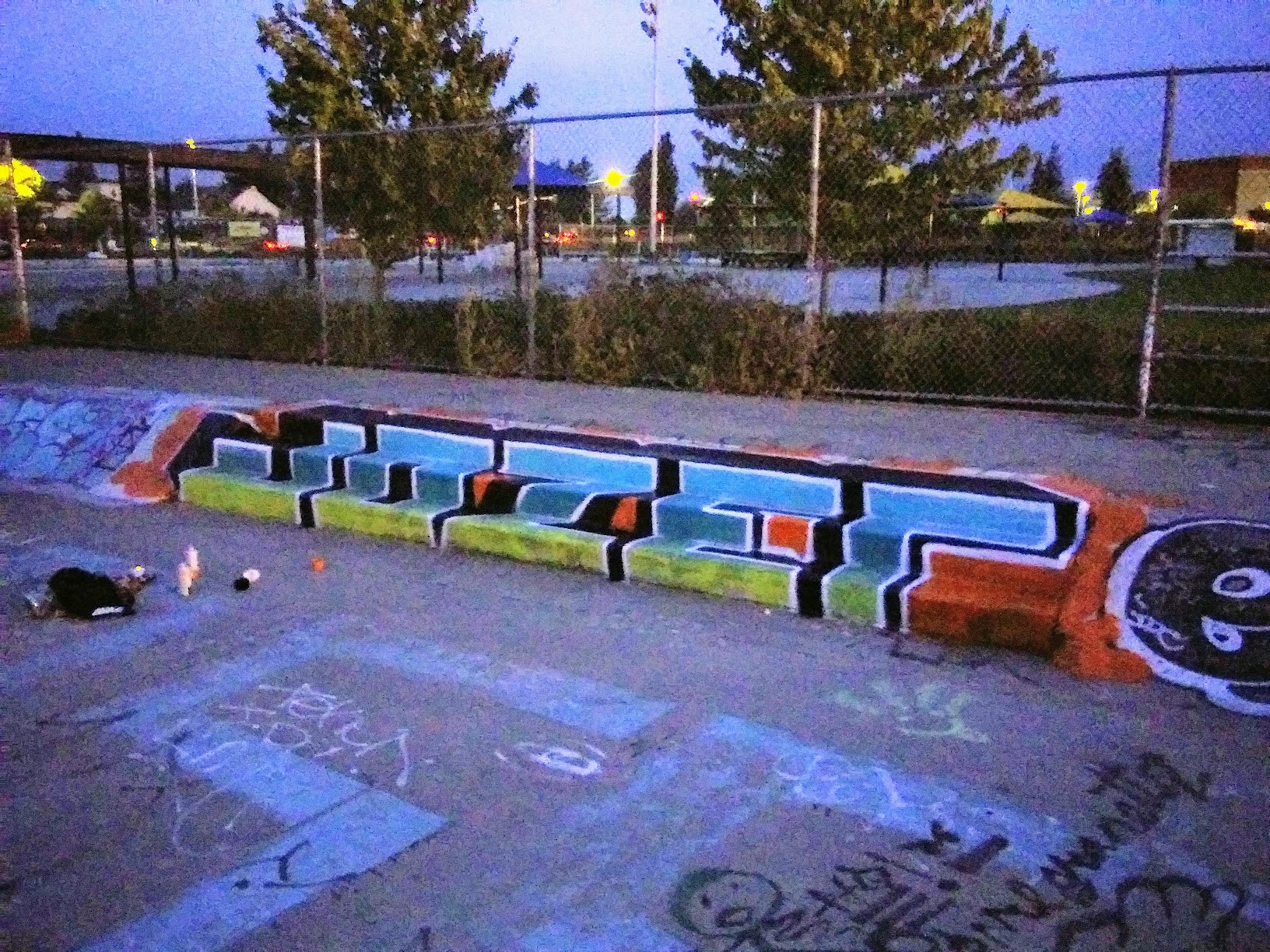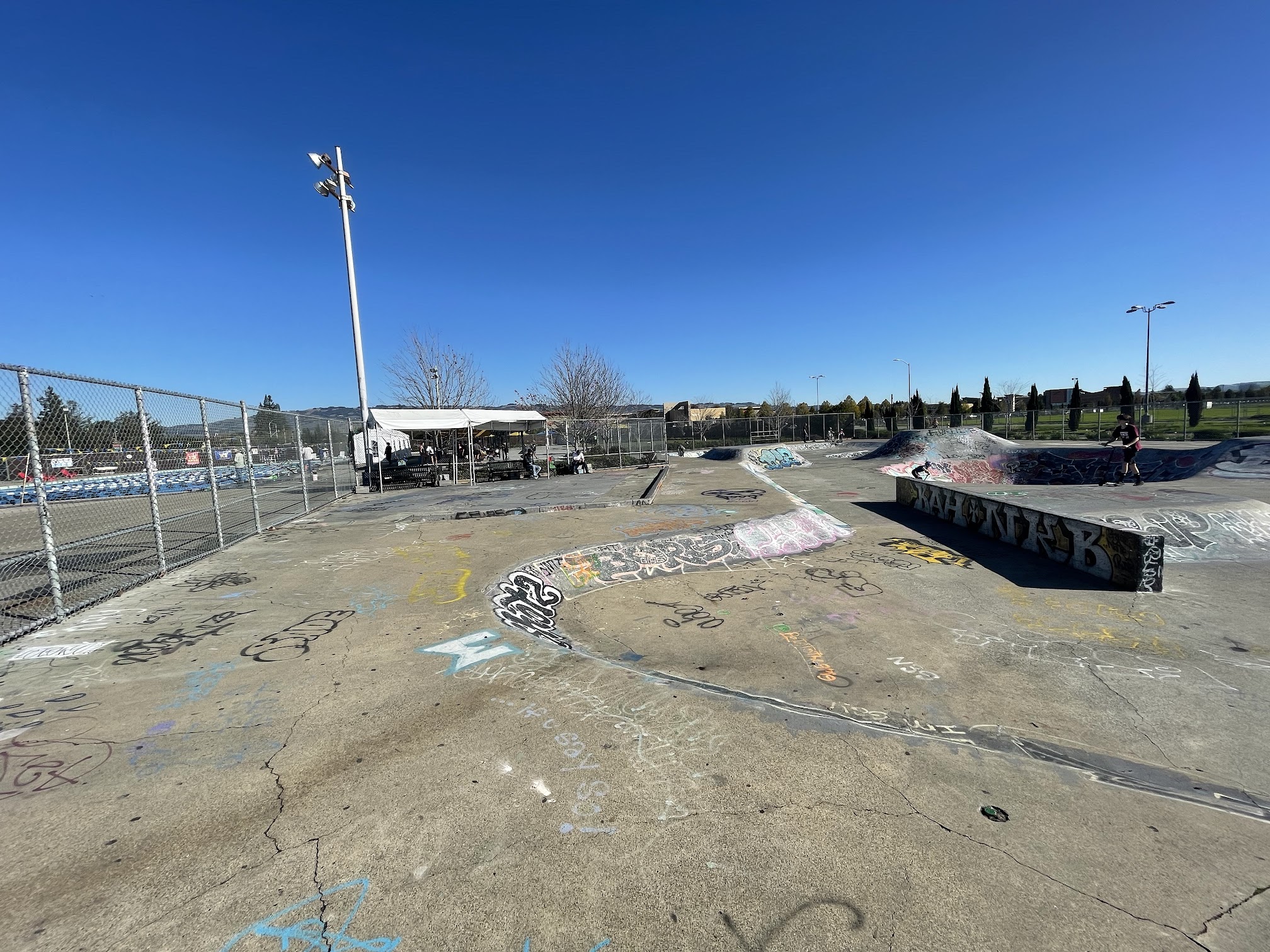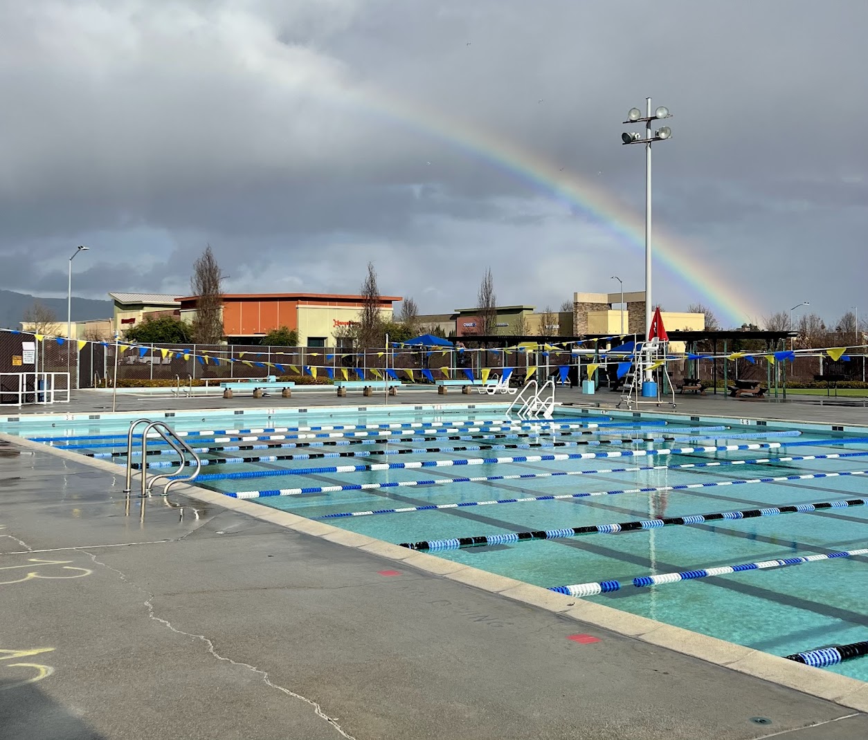 Really nice 50 meter pool, large deck area with some shaded seating and lots of sun. Skate park nextdoor and a food truck in the lot across the street.