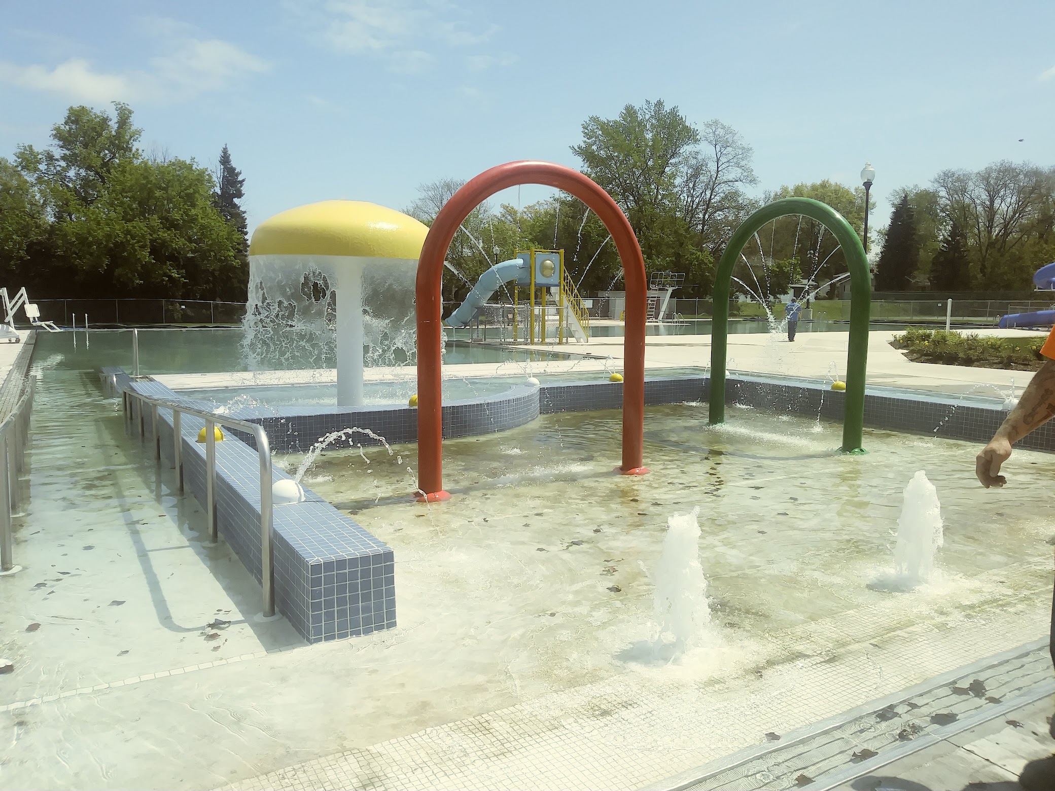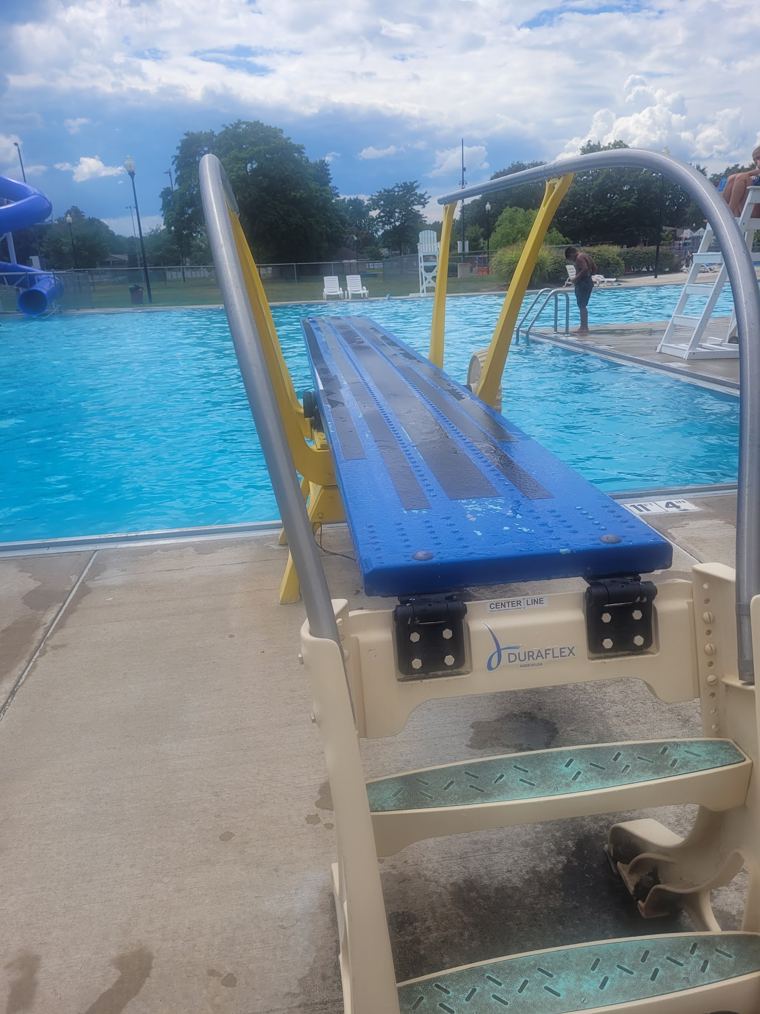 Clean, crowd-friendly pool that has waterslides and diving boards, plus a park with a baseball field.