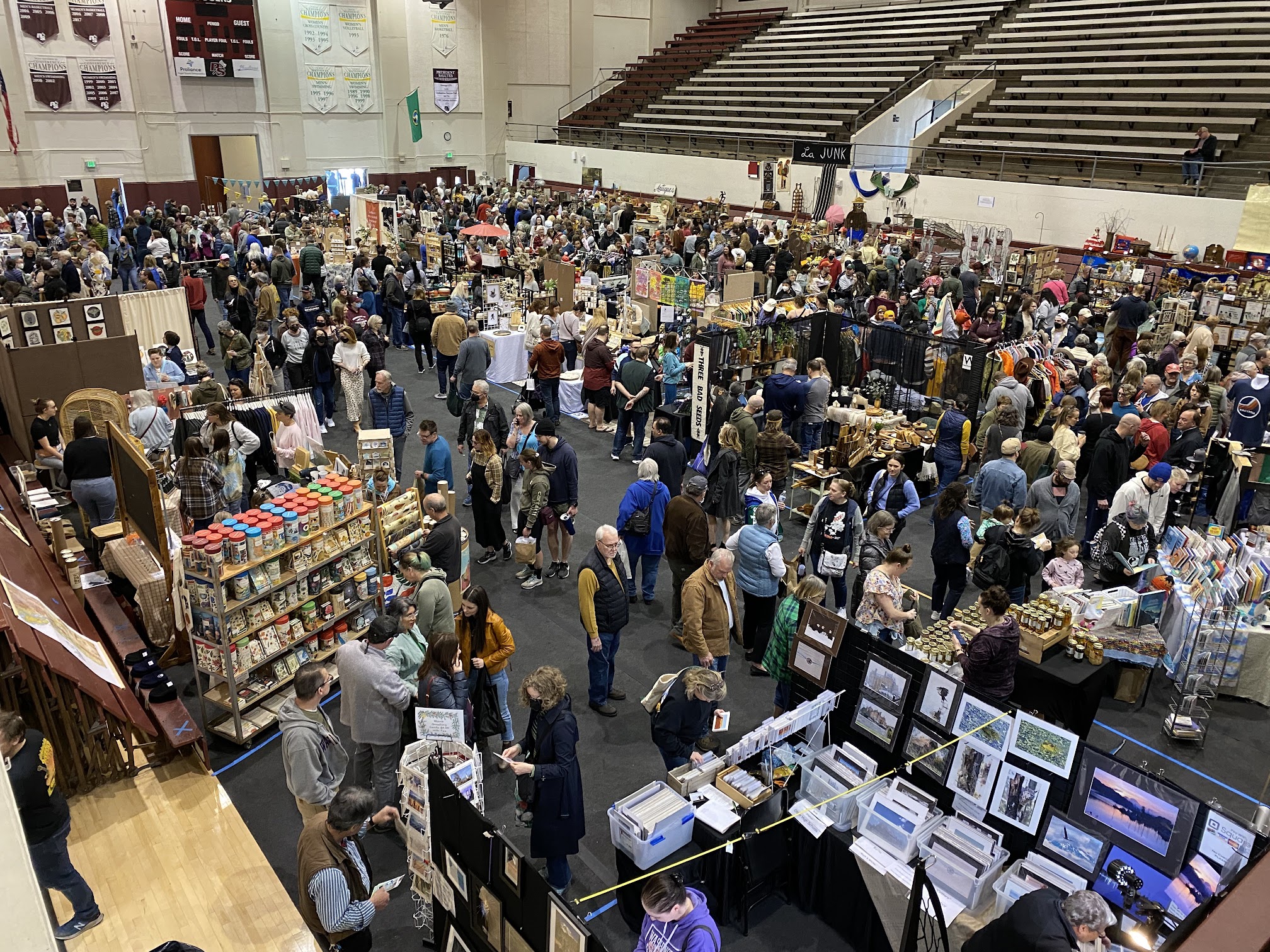 Super Annual Flea Market at The UPS Gymnasium. Big Crowds. Good deals. Purchased these homemade glasses.