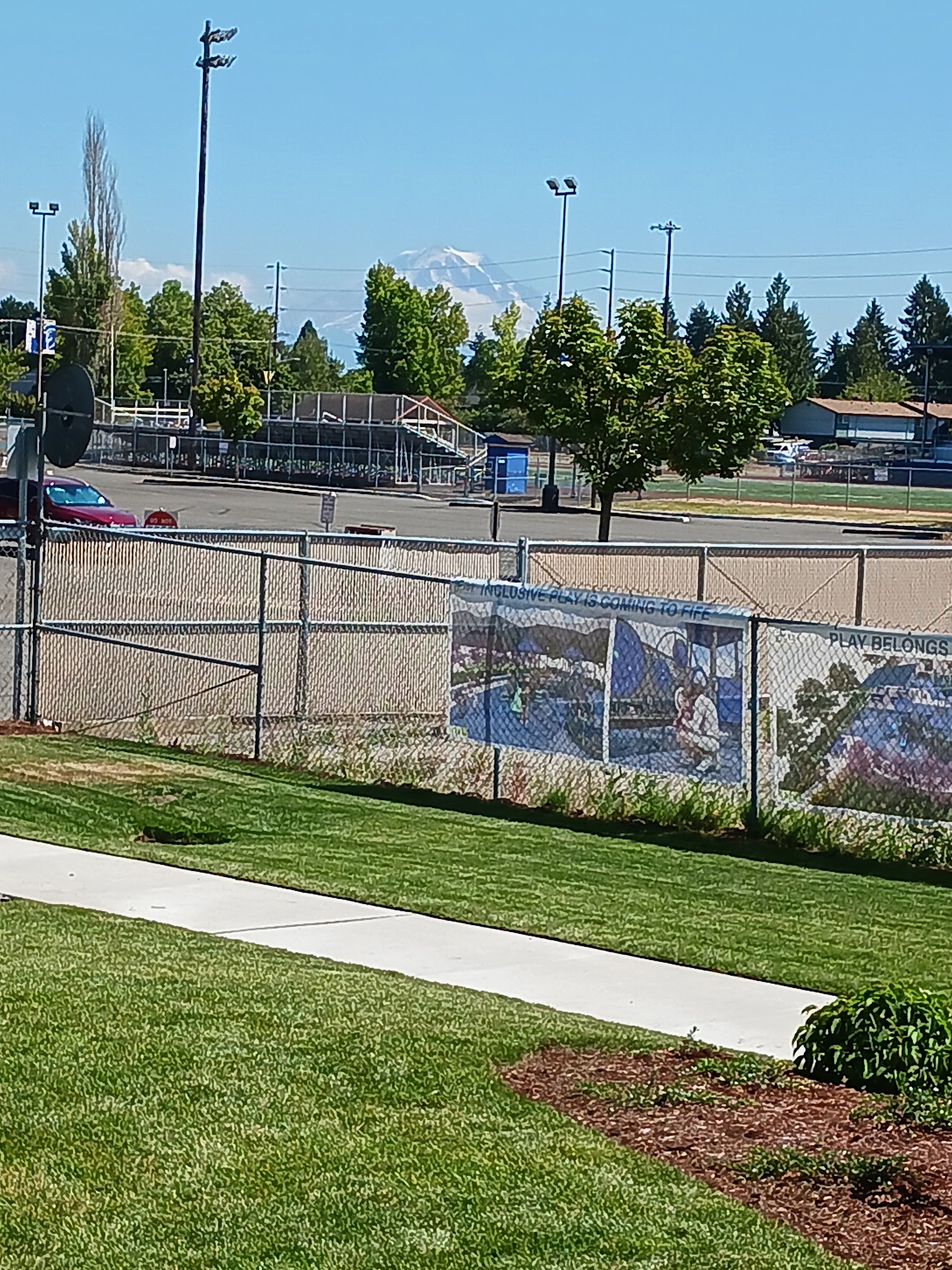 What are people saying (AI review summary)? This park is highly rated for its fun and interactive splash pad, enjoyed by children of various ages. It offers good amenities including clean bathrooms, ample picnic tables (some with umbrellas), benches, and shaded areas. Parking is conveniently close, and the park is generally not overly crowded. While some reviewers noted the snack bar is expensive and the Fife area can feel 'sketchy' (though proximity to the fire department offers reassurance), a major point of concern is the recent removal of most playground equipment, leaving dangerous jagged pipes without any official explanation or signage.