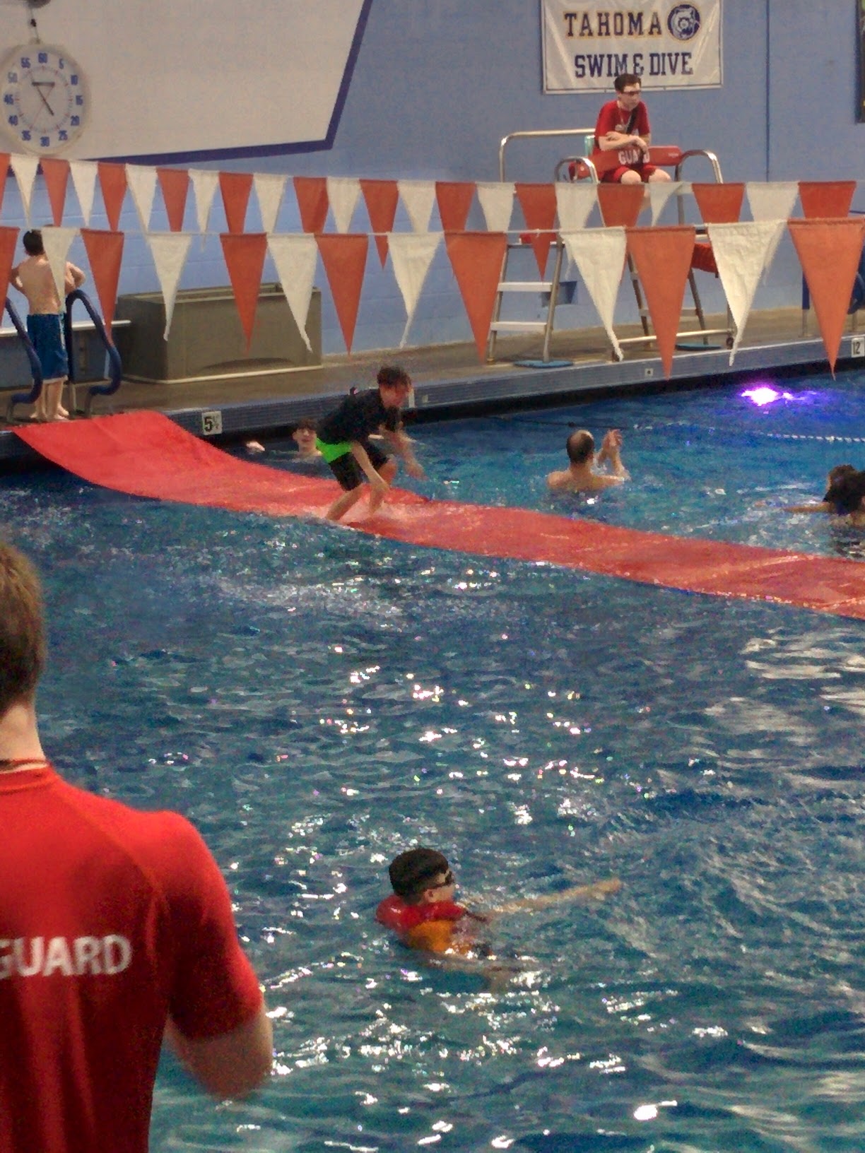 Here for a birthday party right now. 5 lifeguards sitting in the office, talking and laughing and having a great time, while getting paid. 1 lifeguard out watching both shallow and deep end of the pool, with 12 kids total. Because there is only 1 out here, they are not opening the diving board, which was part of the party package. I assume her is the shift manager, wearing a hoodie that says "white lightening" on the back, who was very rude to the paying host parent about not being able to use the party room until 4pm because they need to clean it. 3:30 now and no one has stepped foot in there to clean. Second birthday party we have attended here that just isn't worth what they are charging.