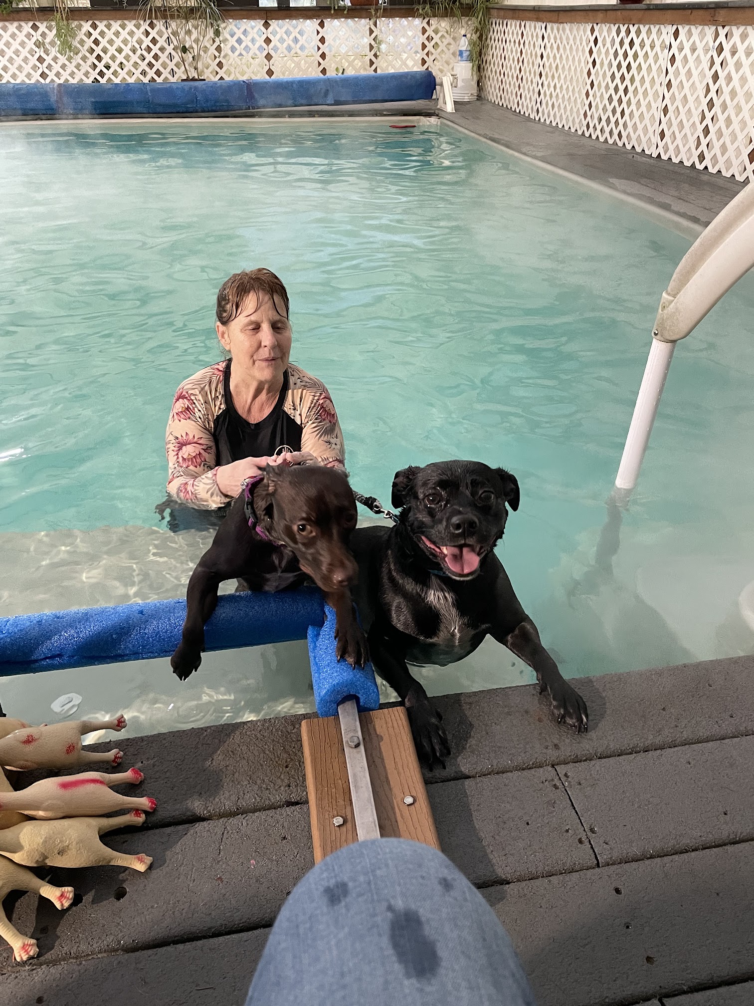 Beth is the best. Whether you have a 12 year old senior dog that needs some pool therapy and strength building, or a young pup that you want to introduce to swimming, she’s an expert at it all. Our German Shepherds can’t wait to get into the pool and swim with Beth. I Strongly recommend Beth and Happy Tails Resort and Spa.