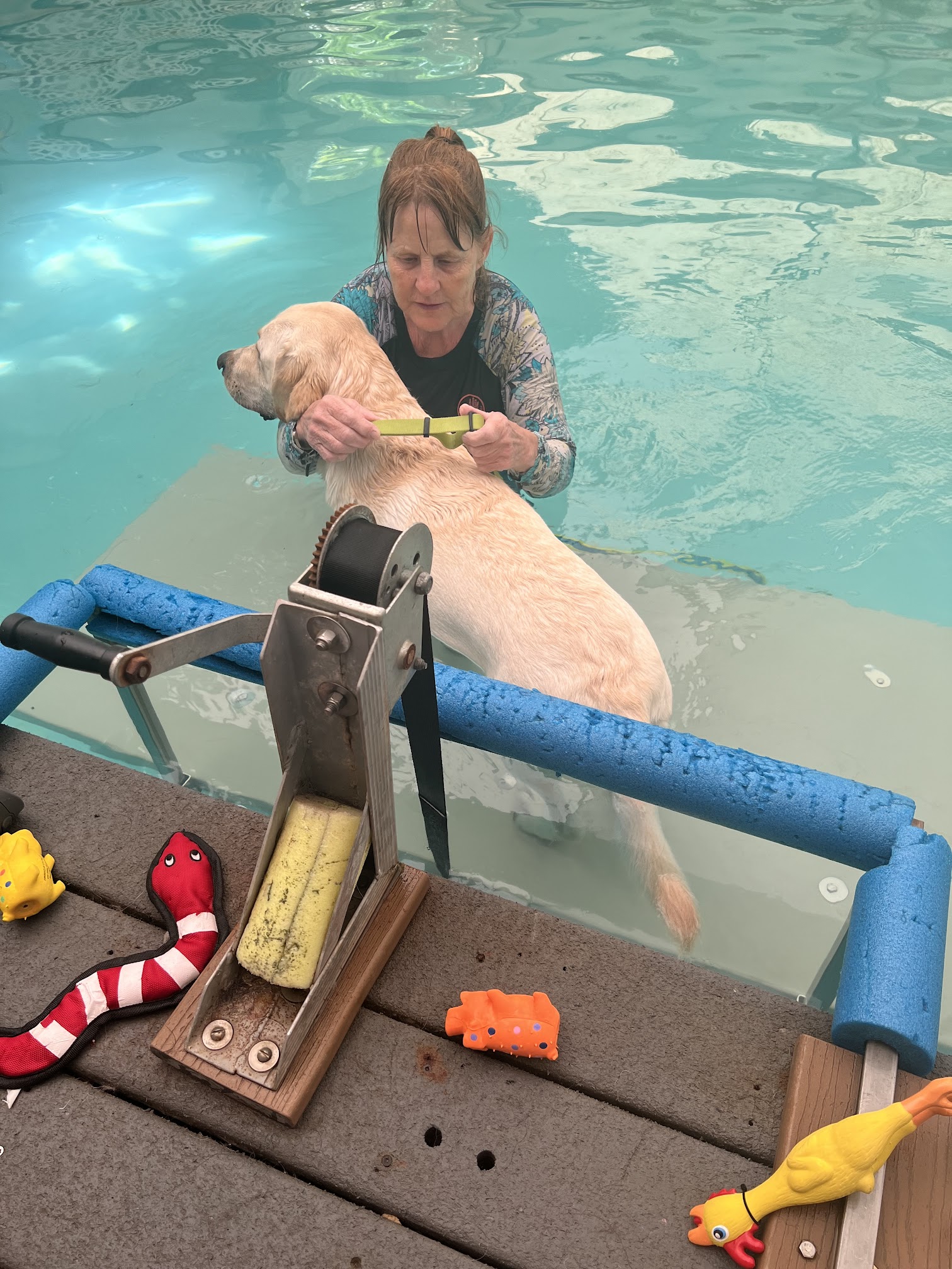 Coming to Beth has been life changing for our pups! We have two dogs, one is 8 and then other a year and a half. Our older pup loves his treats and put on a few unneeded pounds! After a month of swimming lessons our pup has already started to loose weight and get his energy back. The younger one actually sleeps for a good couple of hours (woohoo!) after every session. I cannot recommend this enough. Beth herself is also an amazing person. She truly cares about her customers and their furry friends. I feel extremely comfortable around her and my pups were instantly trusting. We are looking forward to swimming as long as we can here :) :) Photos included of the fun and the impact on our older puppy!