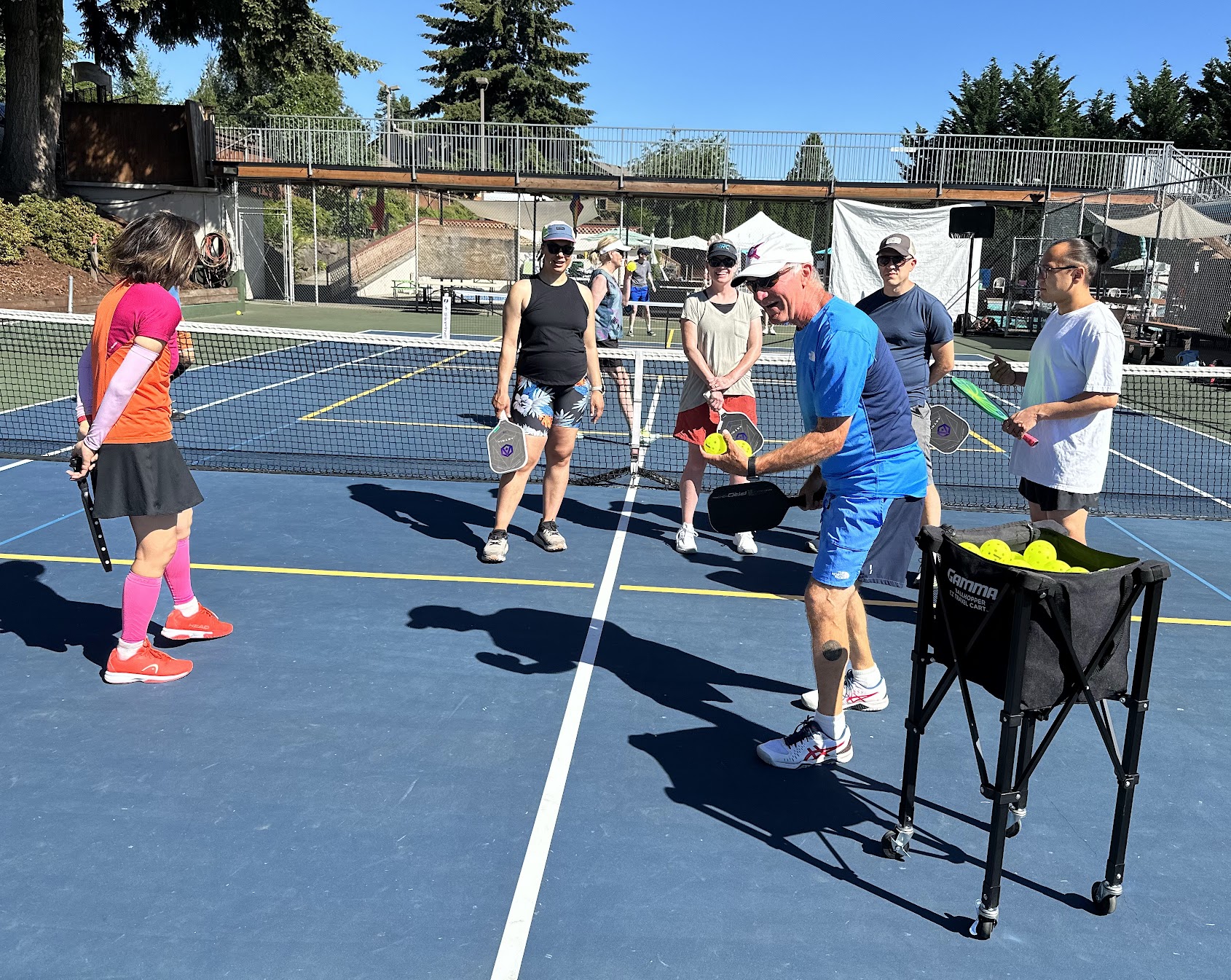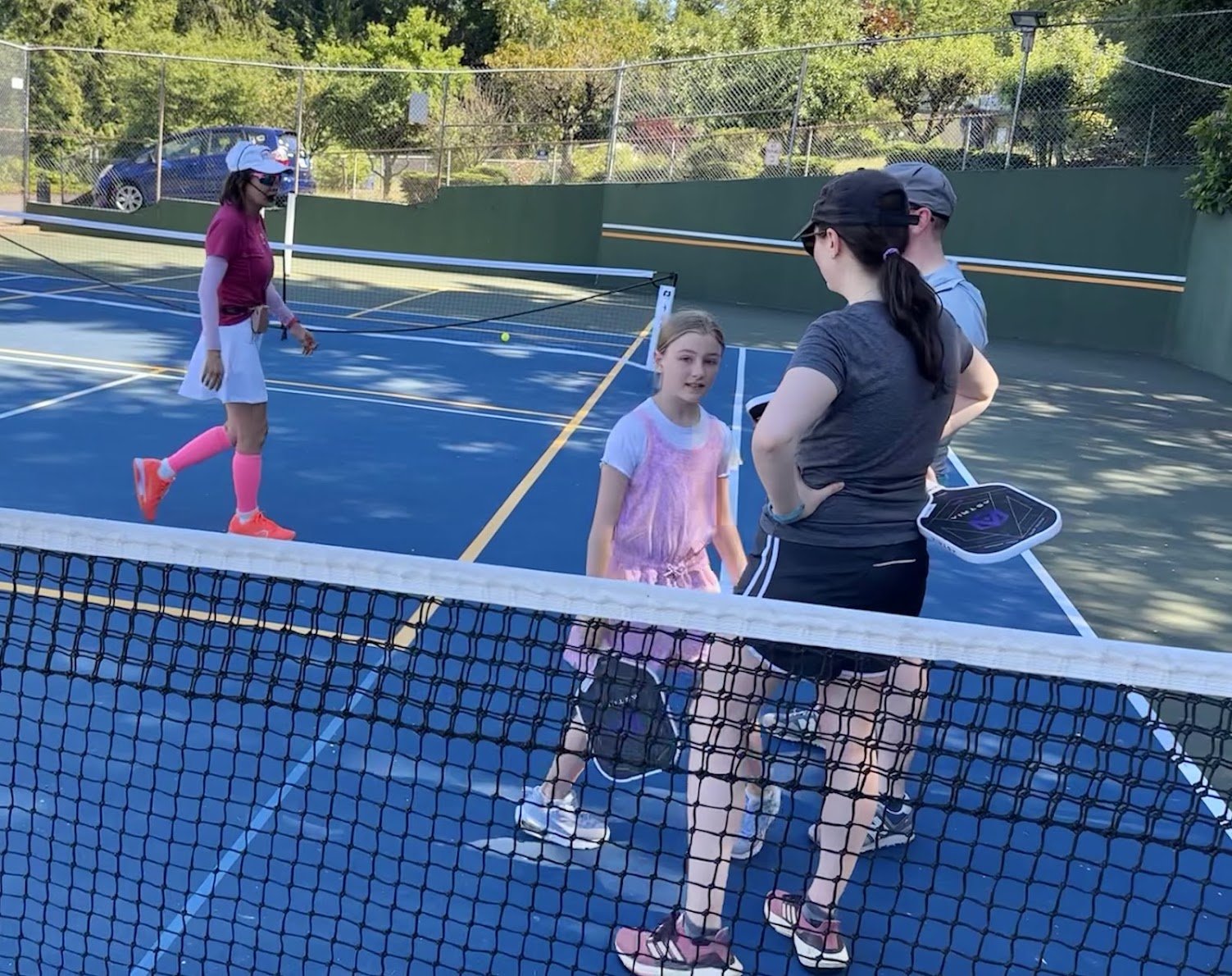A Summer Community Swim Club which has introduced Pickleball as an option with two lined courts, nets and balls.