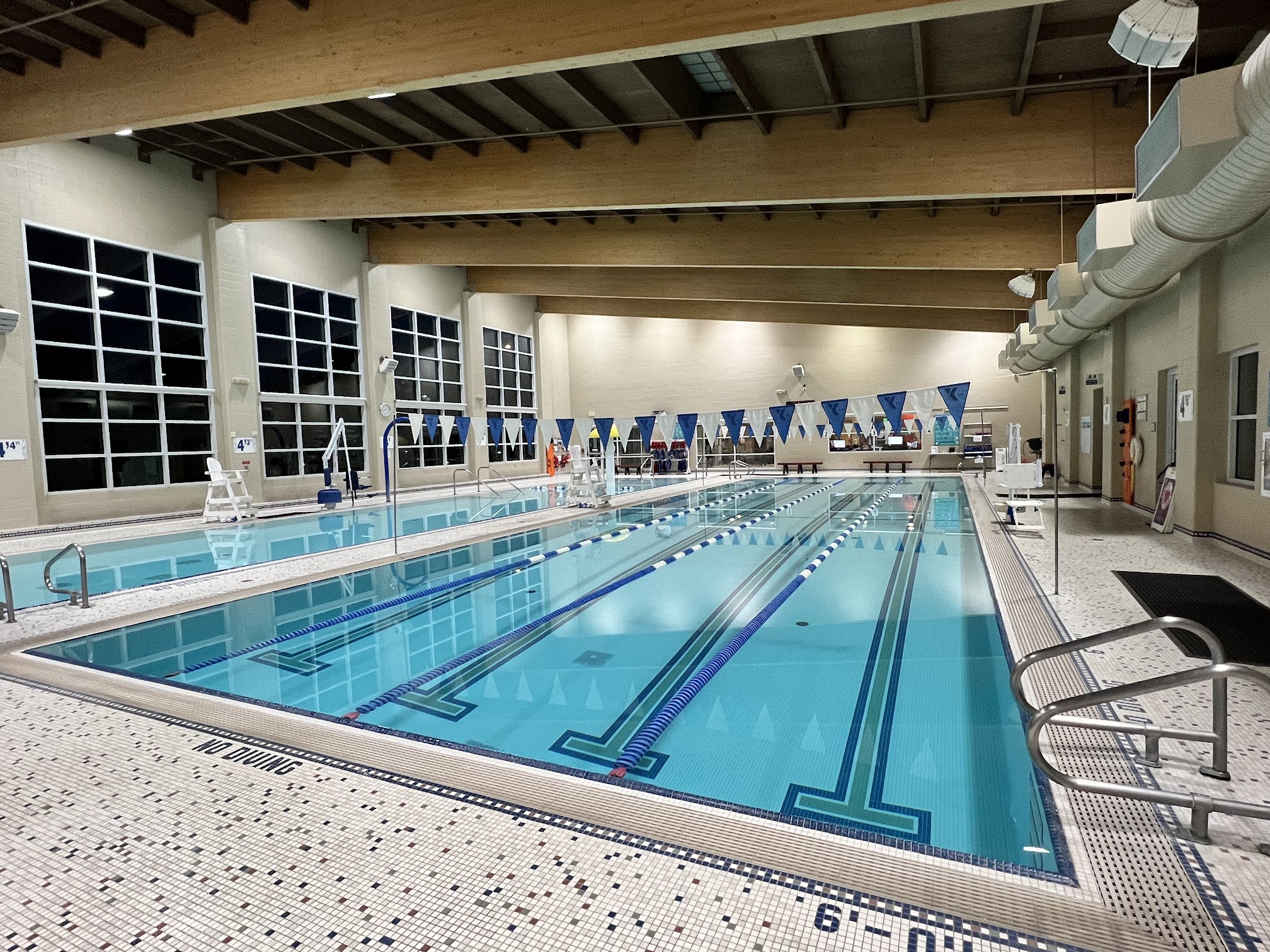The aquatic center at Matt Griffin YMCA features two pools. The lap pool is generally maintained at a temperature between 80-82°F (26.6-27.7°C). The warm water pool, ideal for therapy, lessons, or younger swimmers, is kept at a warmer temperature, typically between 90-92°F (32.2-33.3°C).