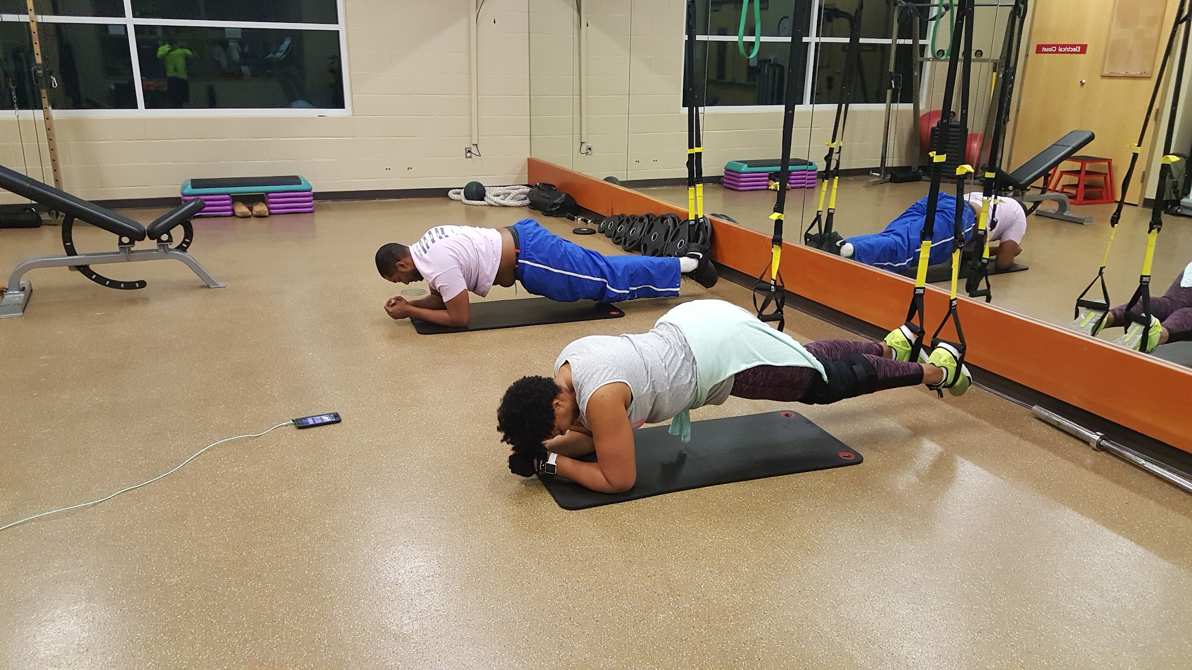 Convenient location, plenty of parking, well equipped with a verity of equipment. Mostly all is pretty much good including staff and faculty. My only complaint is that, it seems about 90% of people are there lacking the workout priority, instead constantly sitting on equipment on their phone. it's a couple of reps, then the phone, a couple of reps and back to the phone, over and over, texting and scrolling. It's disappointing that there is no consideration that someone is interested in using that "1" piece of equipment that they are waisting time on. Enforcing the "no phone rule" on the posted sign might help, or encourage and directing phone use to the nice large bench located by the lockers. I hope for improvement with that problem.