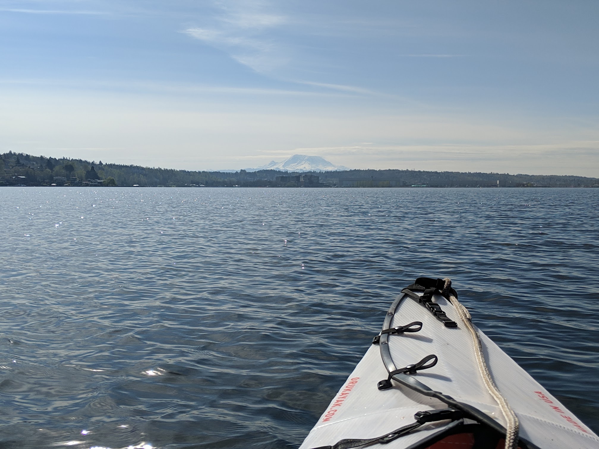 Gorgeous view of Lake WA & Mt. Rainer!Great place to try SUP Fitness with Paddling Yogini LLC!