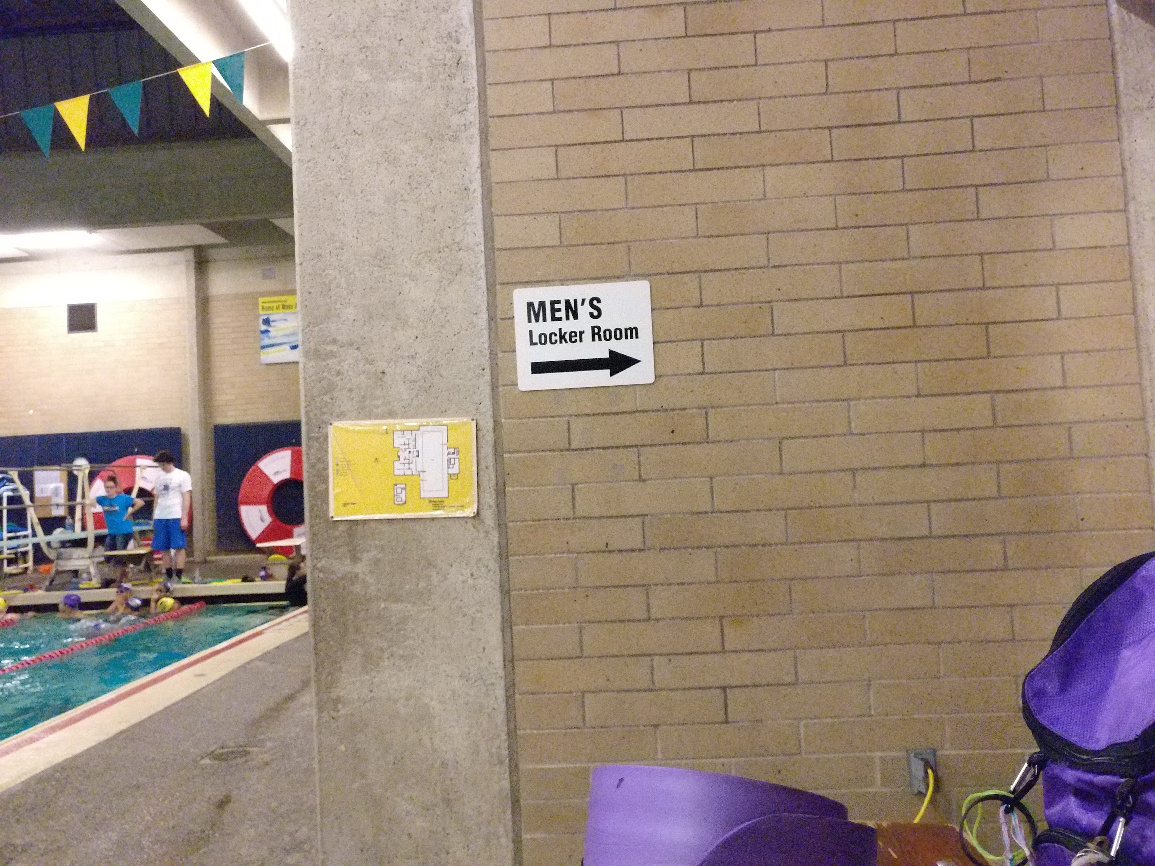 Sunday Family Swim: not busy, plenty of room in the pool. Sign in at front desk; locker rooms are off to the sides. Pool too cold (front desk said 83); showers too hot without temp control. Locker rooms were nice enough: 4 different sizes of lockers, 6 toilet stalls, 6 showers, suit dryer, not too cold, well-lit and bright, no need to bring your own locker. Secondary parking lot behind the building. And there's a playground!