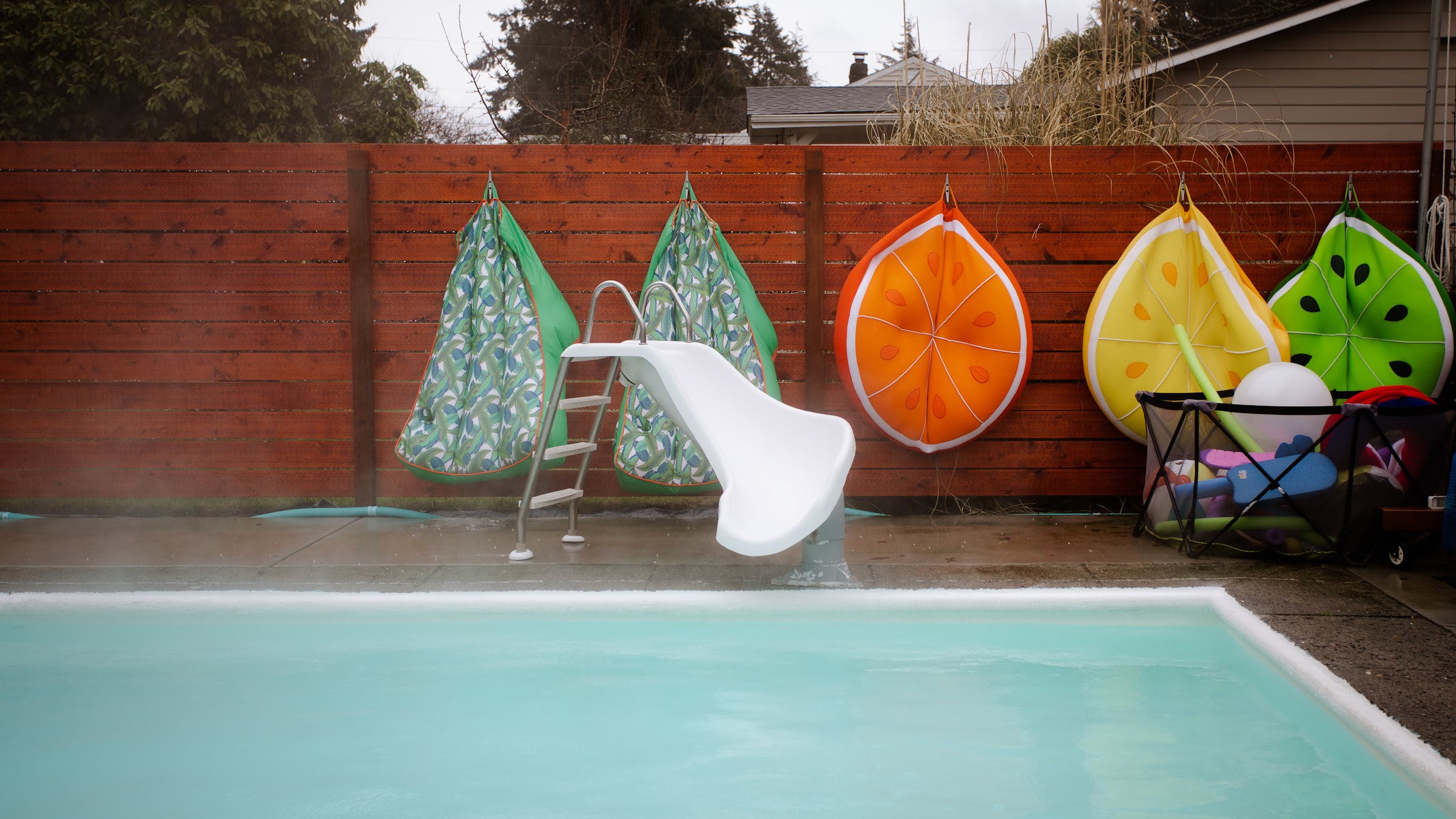 Wonderful winter swim even with the rain! Water was so luxuriously warm, didn't even really need the hot tub. The heated cabana area and spa themed bathroom were terrific. Glad we opted for the extra towel service, and a full 2 hours. Told several friends who are already planning to book!