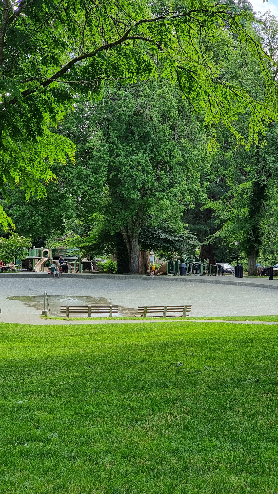 Great activity for younger kids especially if you take with you some kind of water gun. Water turns on at noon. Enough shade. Playgrounds and swing sets nearby.