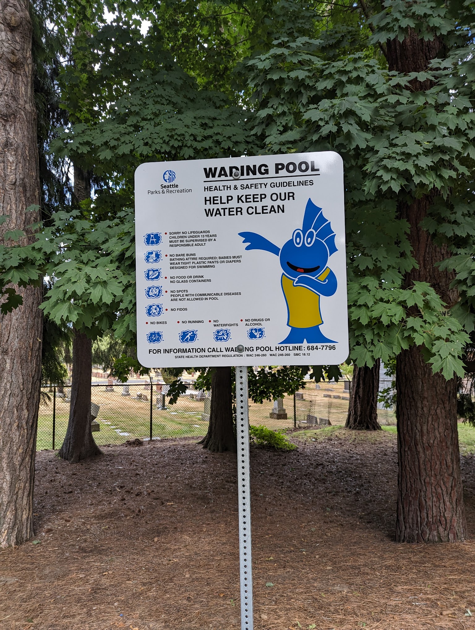 What are people saying (AI review summary)? The wading pool is generally highly praised as a clean, shallow, and enjoyable destination, perfect for young children and families, especially on hot days. Visitors appreciate the ample shade, nearby playgrounds, swing sets, and convenient parking, making it a great spot for an afternoon outing or family picnic. However, a significant drawback noted is the rude and aggressive behavior of a pool attendant, particularly concerning children playing near the water stream, which can detract from the overall positive experience.
