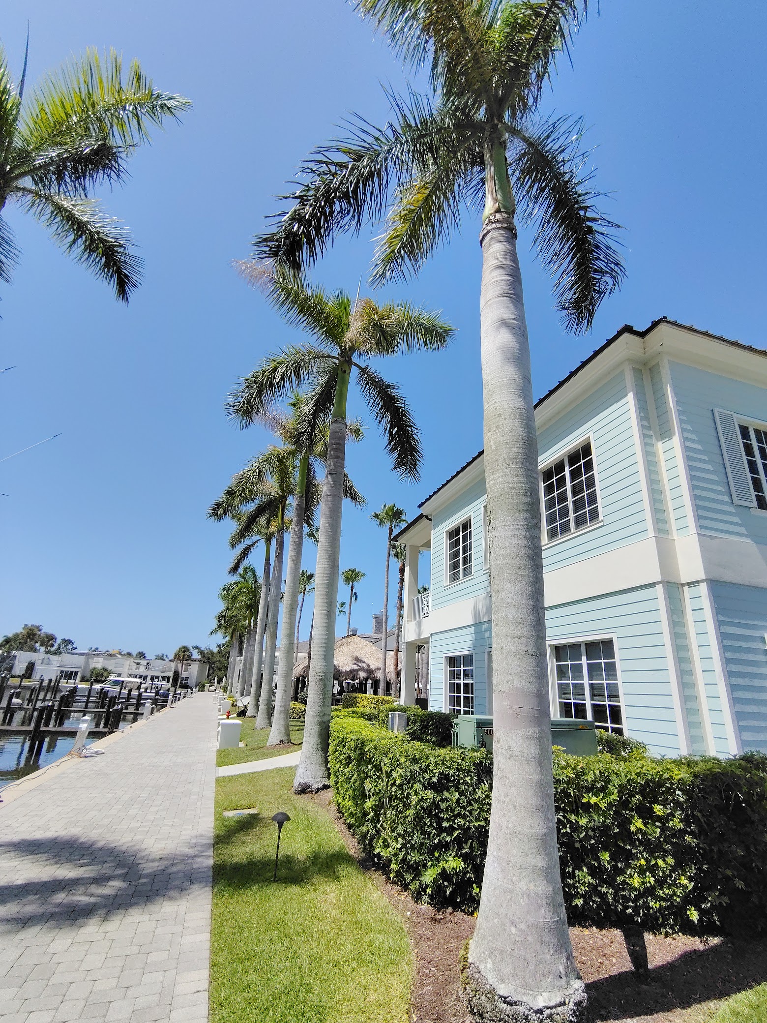 Members-only country club with golf, tennis, dining, a pool, and a tiki bar, plus a marina.