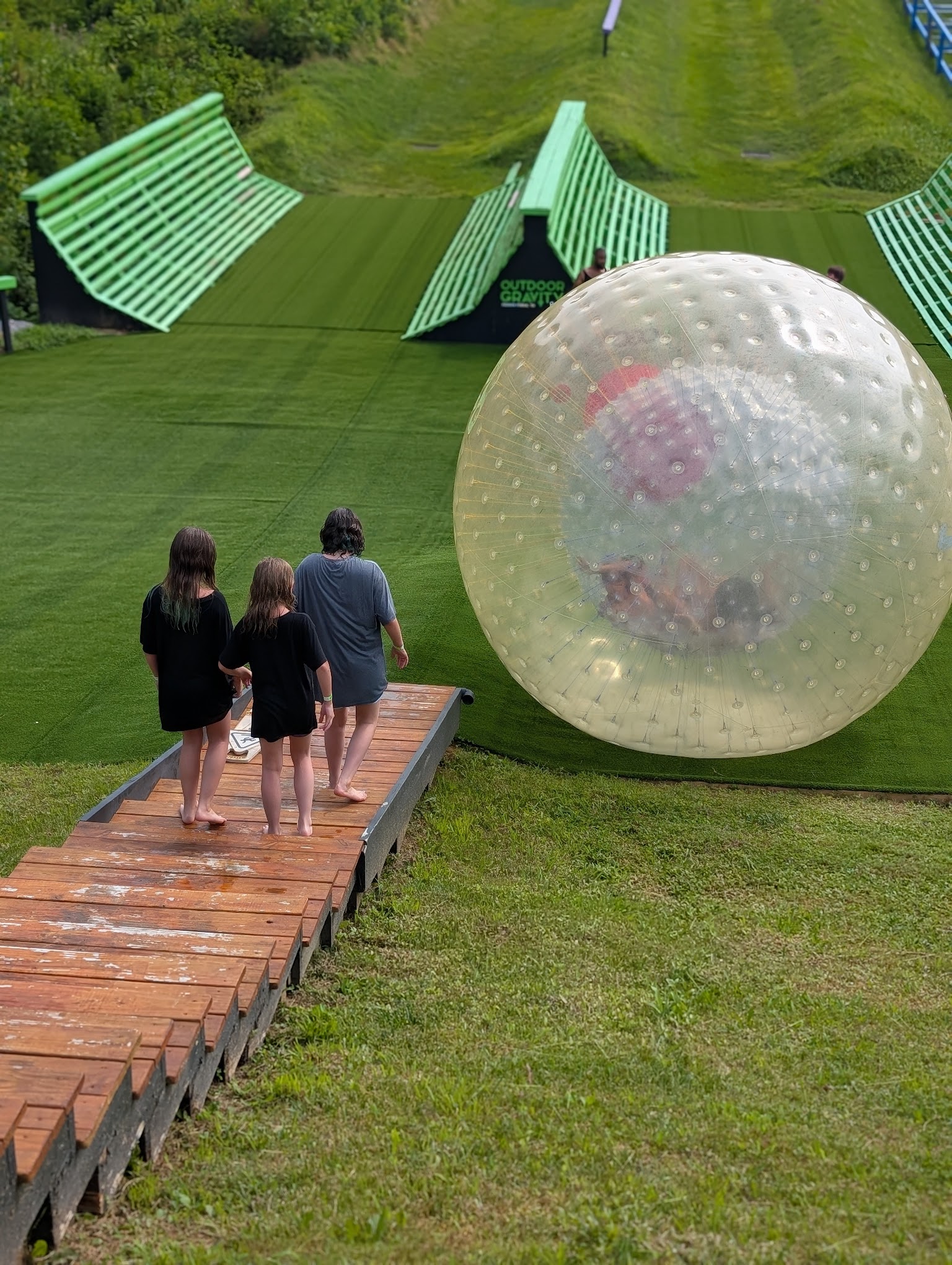 My first ZORB. I laughed my tail off for 2 minutes straight having an absolute blast! I agree with price being a bit steep, especially if sharing a Zorb with others. We all enjoyed it and the workers were helpful. Worth a prob once in lifetime experience.