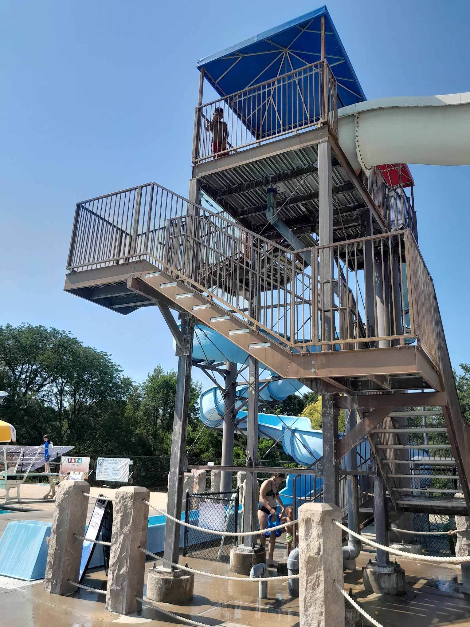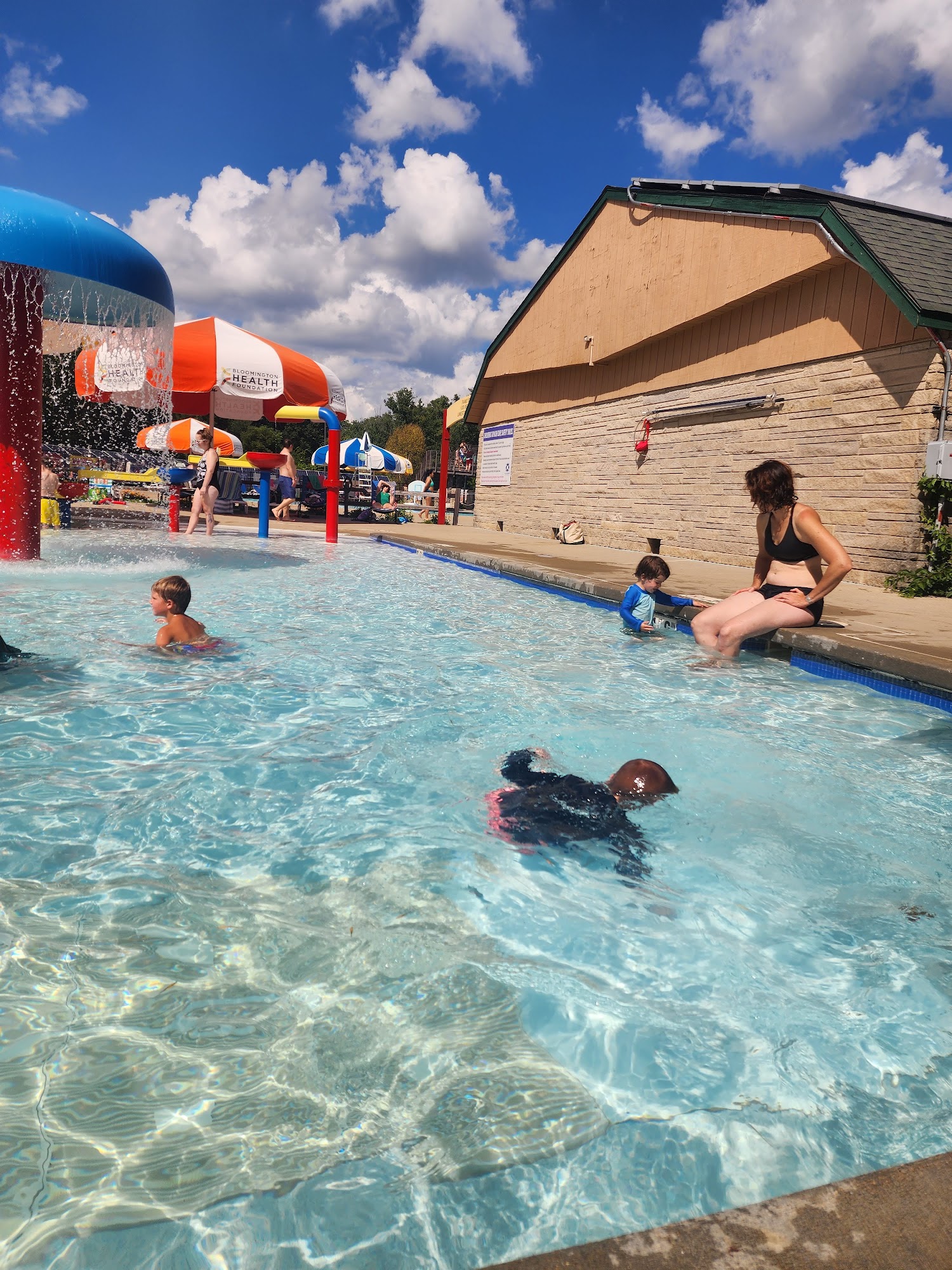 Awesome pool with 2 water slides and kiddie area and diving board. There is locker rooms and a food area as well. It can get very busy. They have free swim days when it is a Fri, sat or sun with weather 90 degrees or above just check website or call in to double check. Fun for the whole family.