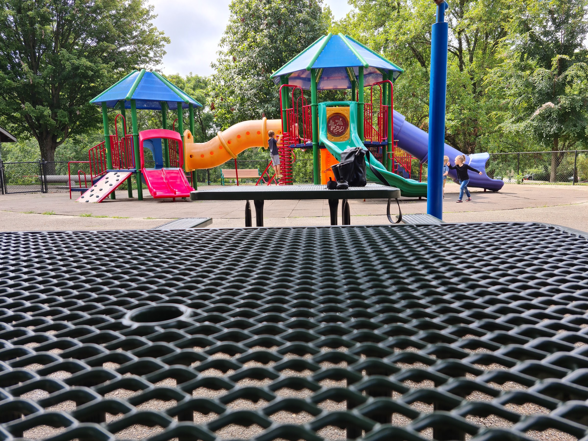 A big public pool. About 50 meters long by 20 meters wide, with a diving well and several water slides. Fairly old. Not usually super crowded. Used mainly by families, day camps, day care, babysitters. The swimmers have a very good vibe. Staff is good. Good pool for playing basketball, tossing a football, etc. Lots of shallow water for ages 6-9. There is a splash pool for the youngest ages. Wherever they are, children 5 and under have to have an adult within 5 feet. There's a small snack bar and patio dining area. A season pass is a pretty good deal. I think I paid $70. It is not open weekdays in August (lifeguards go back to school). I've never seen any trouble at all. An occasional whistle to get young people not to go into the lap lane. That's about it. One lap lane, always there for lap swimming. The water is too shallow at either end, 3 feet deep. It has a decided current behind you going one way, and against the other. Swimmers are very cooperative. And usually only one to three. The pool was not built to hold swim meets or swim team practices. It's designed more to give lots of play area that's 3-4.5 feet deep. For lap swimmers IU Outdoor Pool is far better, but Bryan Park is very convenient for some of us. Lap swimming is discouraged outside the one lane, even when the pool is almost empty. Locker room showers are good, but take 2 or 3 minutes to heat up in the morning. Locker rooms are spacious, very basic. Most people come with their swim suits on, ready to roll. There are no lockers. Kickboards are available if you ask.