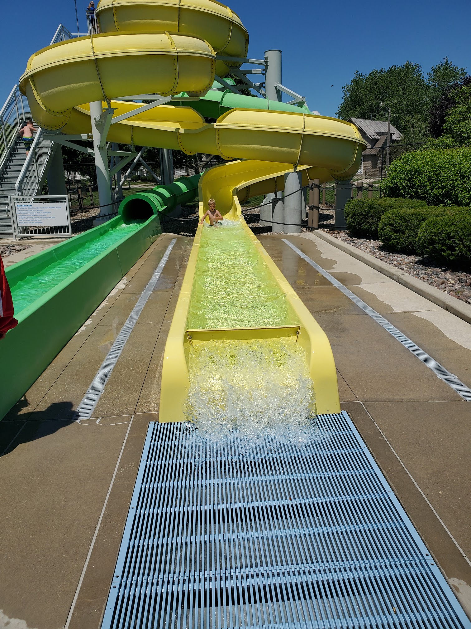 Not really a water park it is just a very small area to lap swim and a very small lazy river. The water burned my eyes for hours after . The lifeguards are very rude they close 15 - 30 minutes before it says twice I went and they kicked us out at 750 today you can see near the baby slides a brunette lifeguard grabbed.a small girls Arm in front of me and said pools closed find your mother . Why take peoples money just say we close at 530 . We drove one hour to get here assuming we leave the pool at 6 and leave the grounds at 615 but these workers are in such a hurry